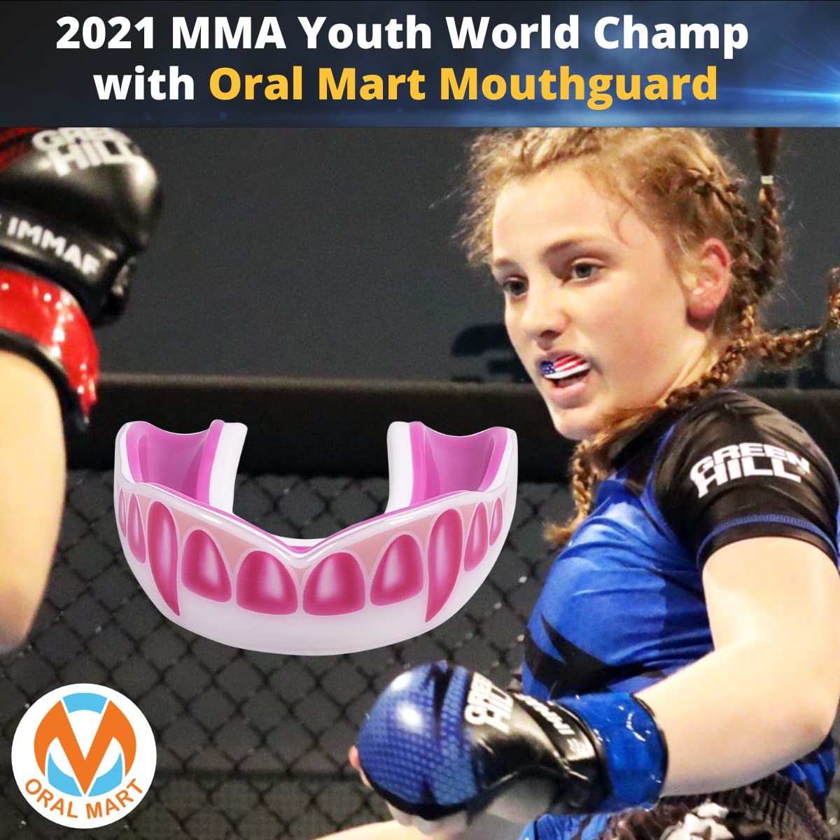 Oral Mart White/Pink Youth Vampire Fangs Mouth Guard For Kids - Youth Mouthguard For Karate, Football, Martial Arts, Taekwondo,