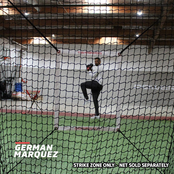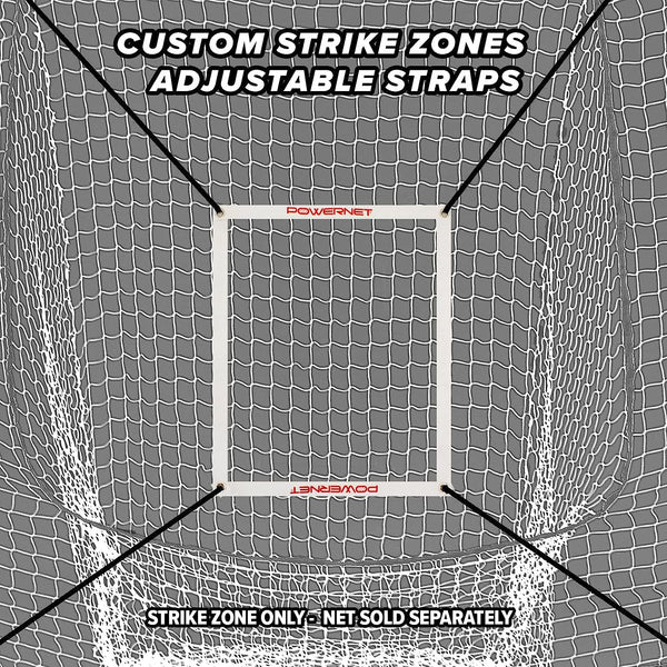 PowerNet's Baseball and Softball Strike Zone attachment helps pitchers develop accuracy and consistency in pitching location. Attaches to all PowerNet 8x8 hitting nets and most other 8x8 practice net systems. Adjustable straps allow for quick and easy adjustment of the zone. Allows pitchers to focus on drills for short or tall batters. Includes Strike Zone Attachment ONLY (Net and Frame sold separately)
