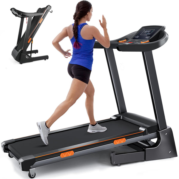 - 8.7MPH Treadmills for Home, Auto-Folding Walking Pad with 0-15% Incline, 3.5HP Motor Supports 300lbs, Bluetooth & Pulse Monitor