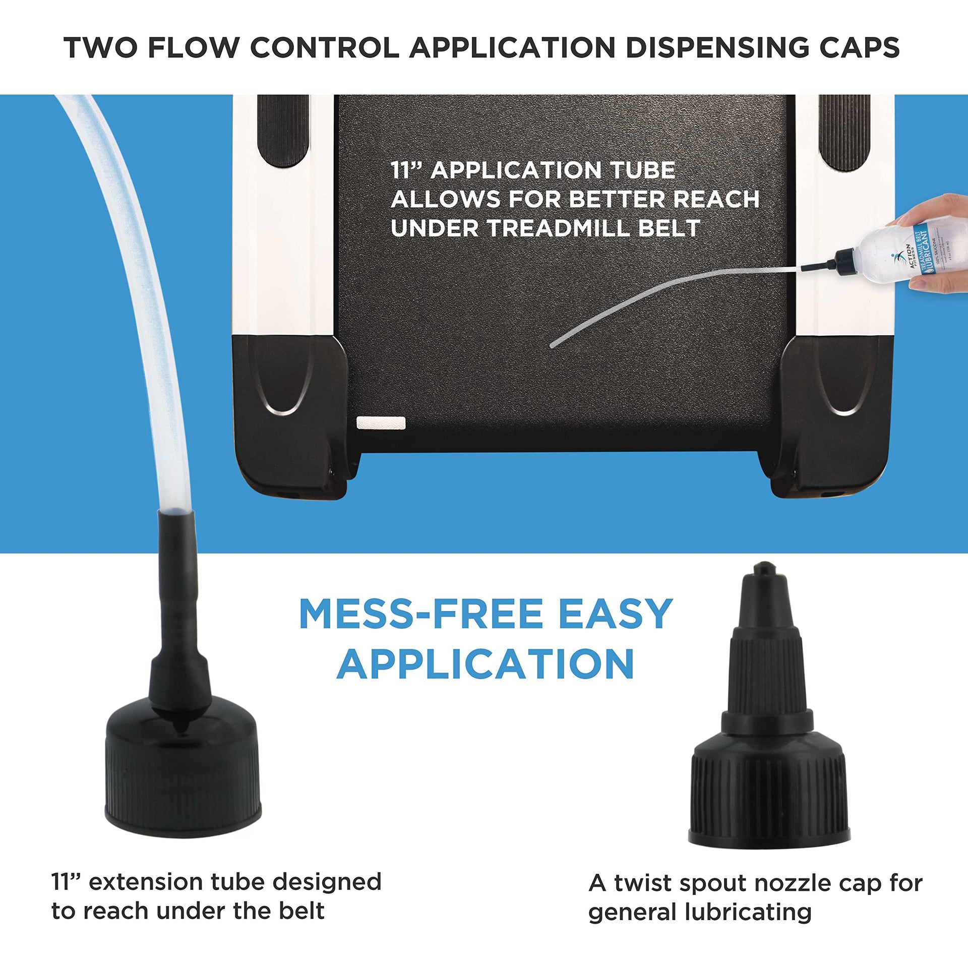 Action Fitness 100% Silicone Treadmill Belt Lubricant, 4-Ounce Bottle with Both an Application Tube and a Twist Spout Cap - Easy to Apply Lube, Controlled Flow, Full Belt Width Lubrication - Odorless