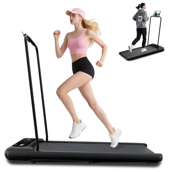 Treadmill With Handles, Folding Foldable Electric Treadmills For Home Small, 270Lbs Capacity, Under Desk Treadmill With Remote Control Led Display,2.5Hp Walking Pad Treadmills With Handle Bar, Black