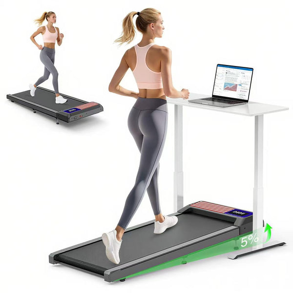 This Walking Pad Under Desk Is Designed For Office And Home Use. It Features 3% And 5% Fixed Inclines And 1-4Mph Speed Adjustment, Easily Switching Between Under-Desk Work, Jogging And Running Modes To Enable Exercising While Working. Equipped With A 5-Layer Non-Slip Running Belt And Shock Absorption System, It Ensures Exercise Safety And Reduces Joint Pressure. It Comes With An Led Display, Remote Control And App Synchronization To Record Time, Speed And Other Data In Real Time. Compact And Ready To Use Without Installation, It Can Be Stored Under Sofas Or Desks Without Taking Up Space. With A 2.5Hp Motor Supporting Up To 265Lb And Operating Noise Below 45Db, It Combines Strong Power And Low Noise, Meeting The Efficient Exercise Needs Of People With Different Weights.
