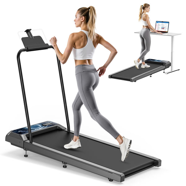 Rjop Walking Pad Treadmill With 8% Adjustable Incline And Removable Handle Bar, Compact Under Desk Treadmills For Home Small Wit