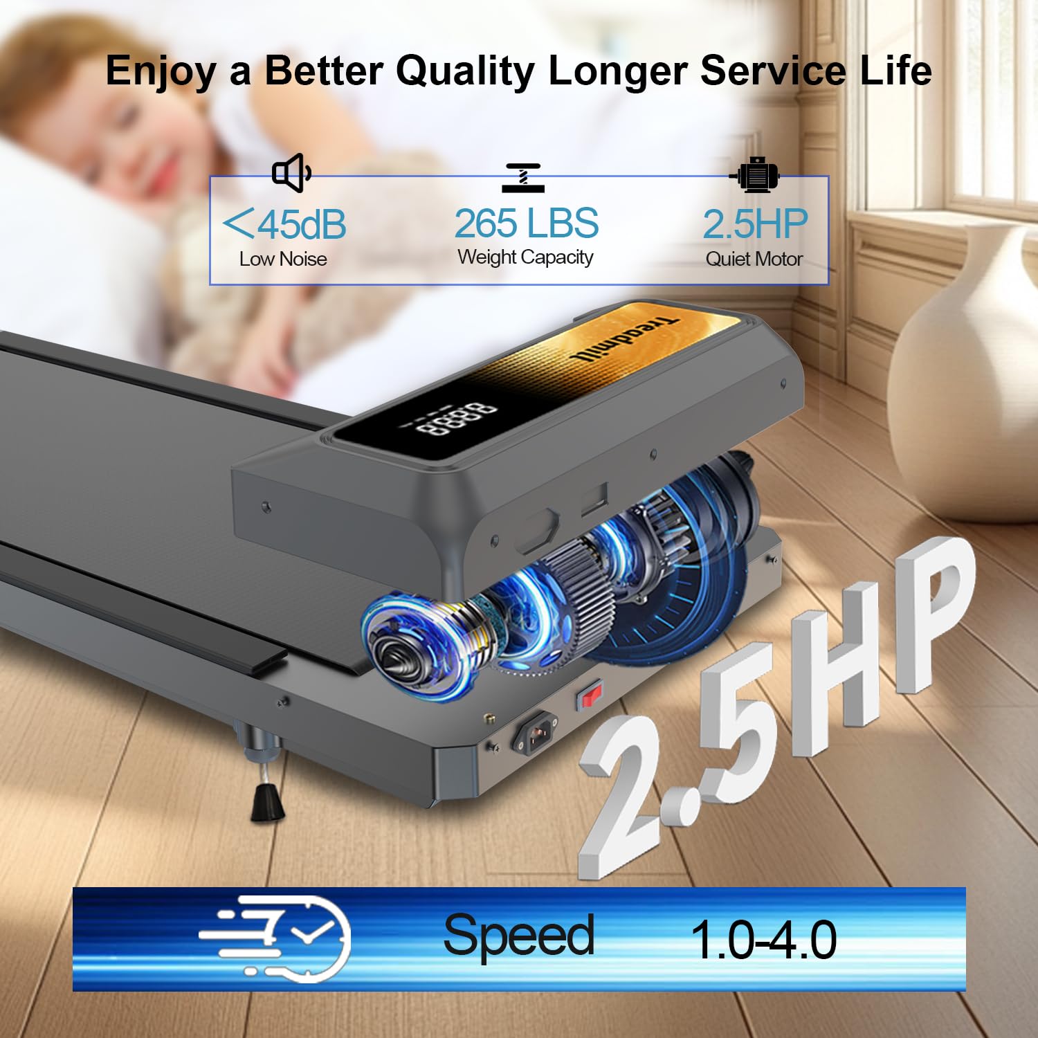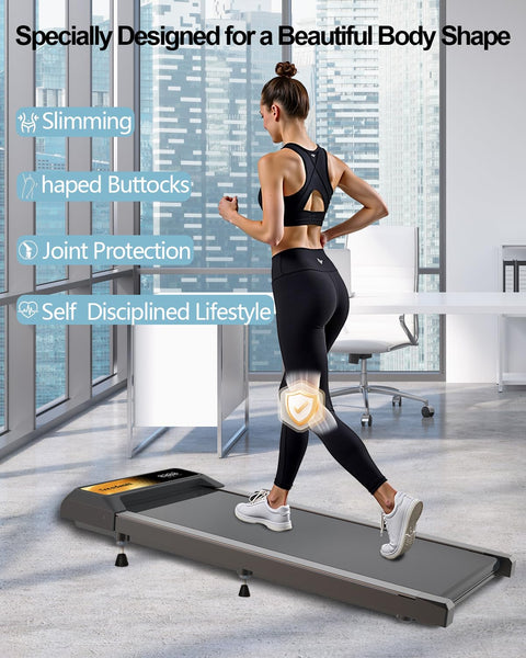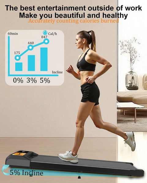 ?Product Size? 43.1 * 18.5 * 4.6 inches.Bracket model, with cell phone and tablet holder, remote control, compatible with KINOMAP and ZWIFT sports app. | ?App Readl -TimeData Tracking&Remote Control? Portable treadmill comes with an LED display and connects to the APP exercise software to track speed, distance, time and calories in real time. The included remote control allows you to adjust the speed and start/stop the walking mat. | ?5% Incline Treadmills for Home ? CYCLERADE under-desk treadmills have the newest 5% Incline feature, which results in 3 times more calories burned. This feature of the walking mat treadmill allows you to enjoy hiking and climbing at home even on rainy or foggy days. | ?2.5 HP Powerful Silent Motor Incline Treadmill? This sturdy under-desk treadmill has a powerful 2.5 HP motor that is quiet . It has an external fan to help cool the motor, and it can last for 15,000 hours, which allows you to exercise for a long time. The treadmill offers walking, jogging, hiking, and running modes with speeds from 0 to 4.0 mph. It is quiet, so it is suitable for home and office use. | ?Five-Layer Anti-Slip Belt&Advanced Shock Absorption? Walking pad treadmill features a five-layer anti-slip running belt (43.1 '' x 18.5 '') for superior stability and joint protection. The impact reduction system minimizes strain on knees and muscles, ideal for under desk treadmill workouts or intense home training. | ?Supptor Services? We provide 2-year protection and 24/72 friendly customer service. We will provide timely and professional services to answer any questions you may have. Please feel free to contact us at any time.
