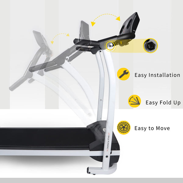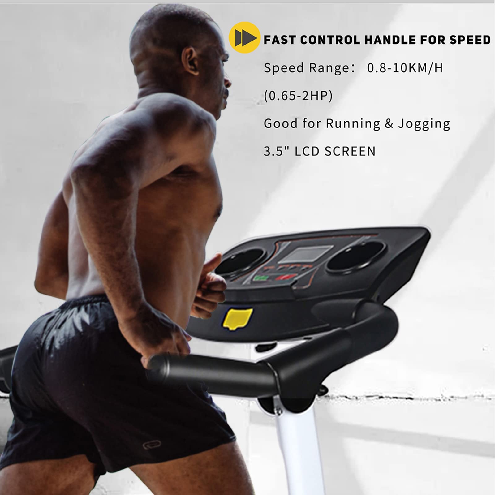 PRODUCT FEATURES 1.Everyone can use the product.(Old people and children need to be accompanyed by guardians to use the product.) 2.Compact and elegant appearance, easy to install. 3.Emergency stop device for safety protection. 4.Simple and convenient operation. 5.Max load is 120KG 6.Selected high quality materials, stable structure, safety and reliability. 7.Folding-up functions for freely folding, save space, easy to move. 8. Intelligent control panel, LCD display window (speed -, mode, program, speed +) Full control of movement. Speed range 1.0-12 Km/h.