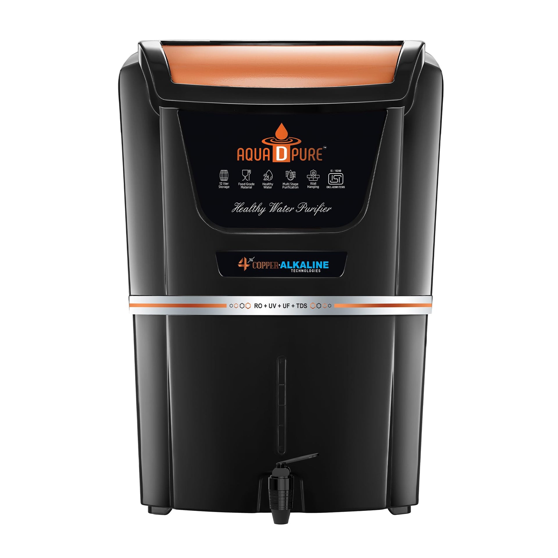 The Aqua D Pure 12L Ro Water Purifier With Alkaline Filter Is A Cutting-Edge Solution For Families Seeking Not Only Purified Water But Also A Boost In Health And Wellness. This Advanced Purifier Combines The Powerful Reverse Osmosis (Ro) Technology With An Alkaline Filter, Ensuring That Harmful Impurities Such As Chemicals, Heavy Metals, Bacteria, And Viruses Are Effectively Removed From Your Water. The Alkaline Filter Adds Essential Minerals Like Calcium, Magnesium, And Potassium, Raising The WaterS Ph Level To Promote A Balanced, Healthy Body. With Its 12-Liter Storage Capacity, The Aqua D Pure Purifier Is Perfect For Medium To Large Households, Providing A Continuous Supply Of Purified, Mineral-Enriched Water Throughout The Day. The Multi-Stage Filtration Process, Which Includes A Sediment Filter, Activated Carbon Filter, Ro Membrane, And The Alkaline Filter, Ensures The Water Is Not Only Pure But Also Healthier And Better-Tasting. Its Sleek, Compact Design Makes It A Perfect Fit For Any Modern Kitchen, While Its Energy-Efficient Performance Guarantees Long-Lasting, Reliable Use. Experience Optimal Hydration And Improved Health With The Aqua D Pure 12L Ro Water Purifier With Alkaline Filter, The Perfect Addition To Your Home.