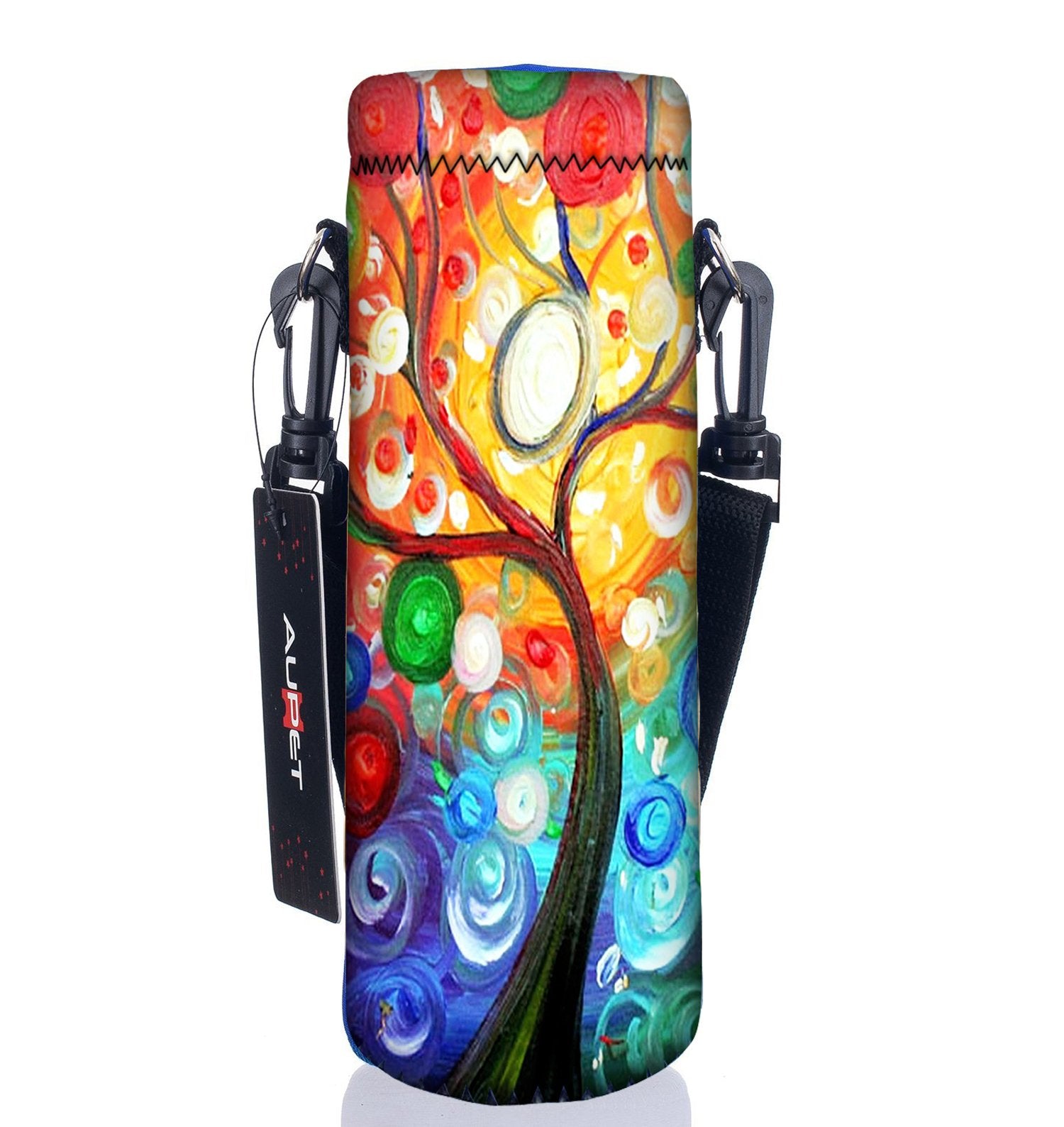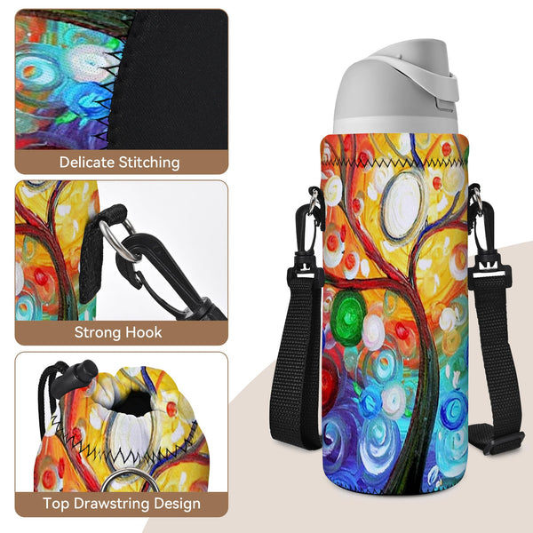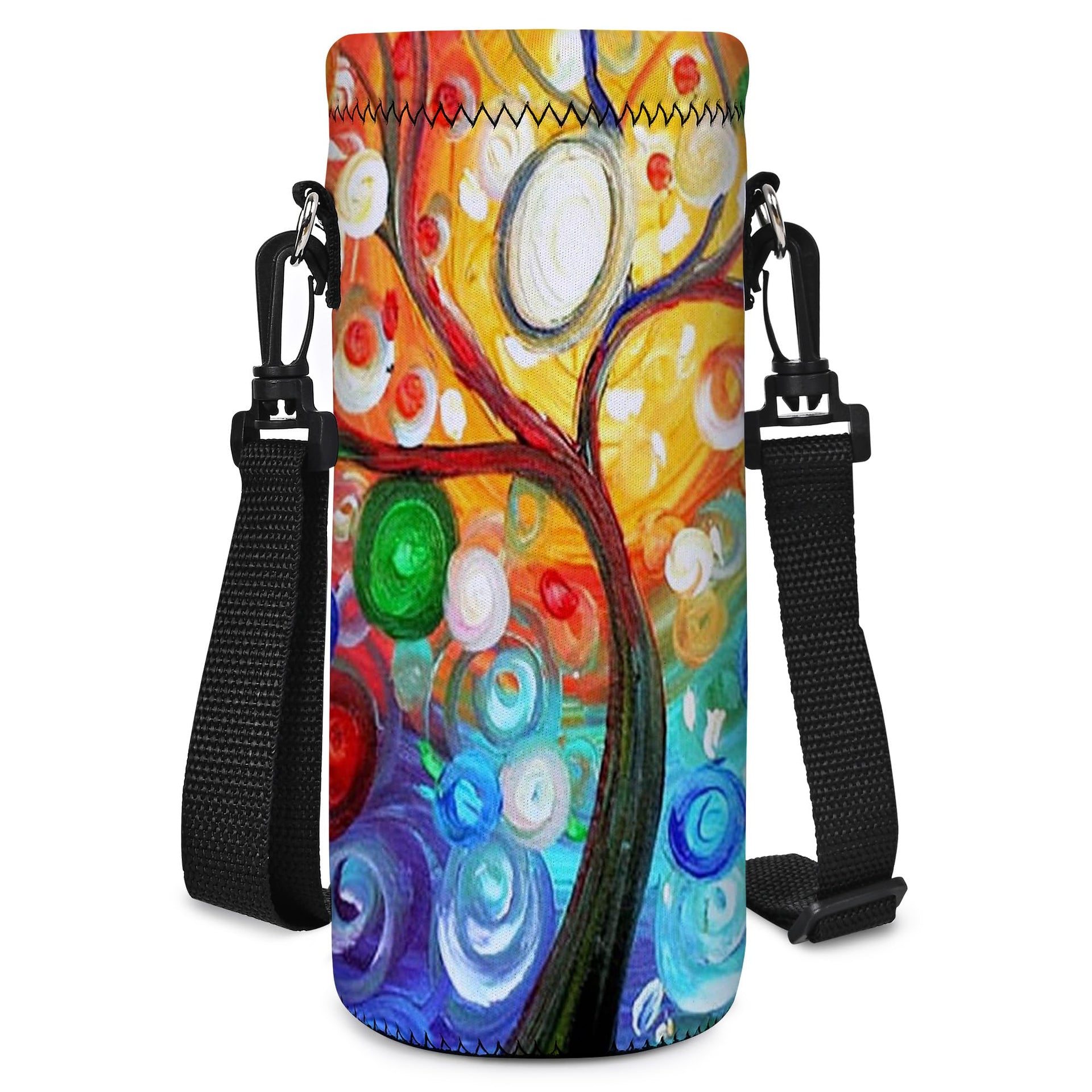 Aupet Water Bottle Carrier,Colorful Tree 500Ml Water Sport Bottle Cover Pouch Insulated Soft Sleeve Holder Case Shoulder Strap
