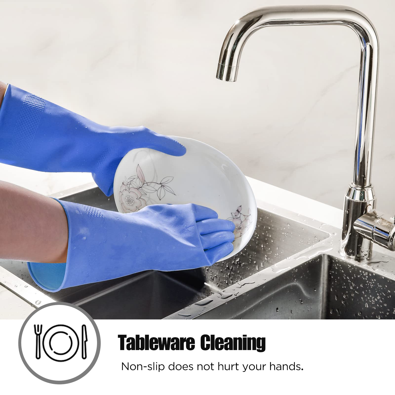 Iucge Rubber Cleaning Gloves Blue 6 Pairs For Household,Reuseable Dishwashing Gloves For Kitchen(6,Xl)