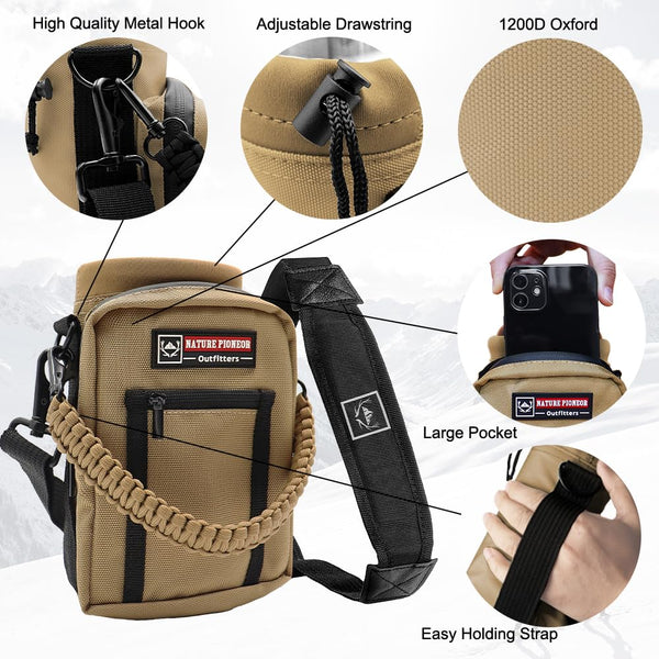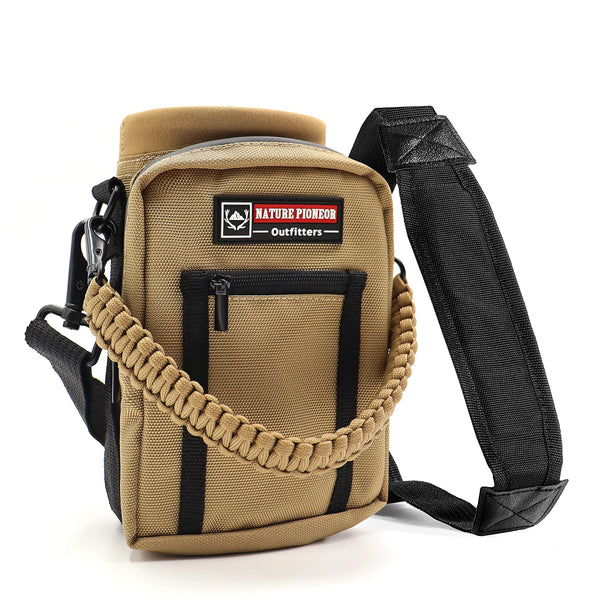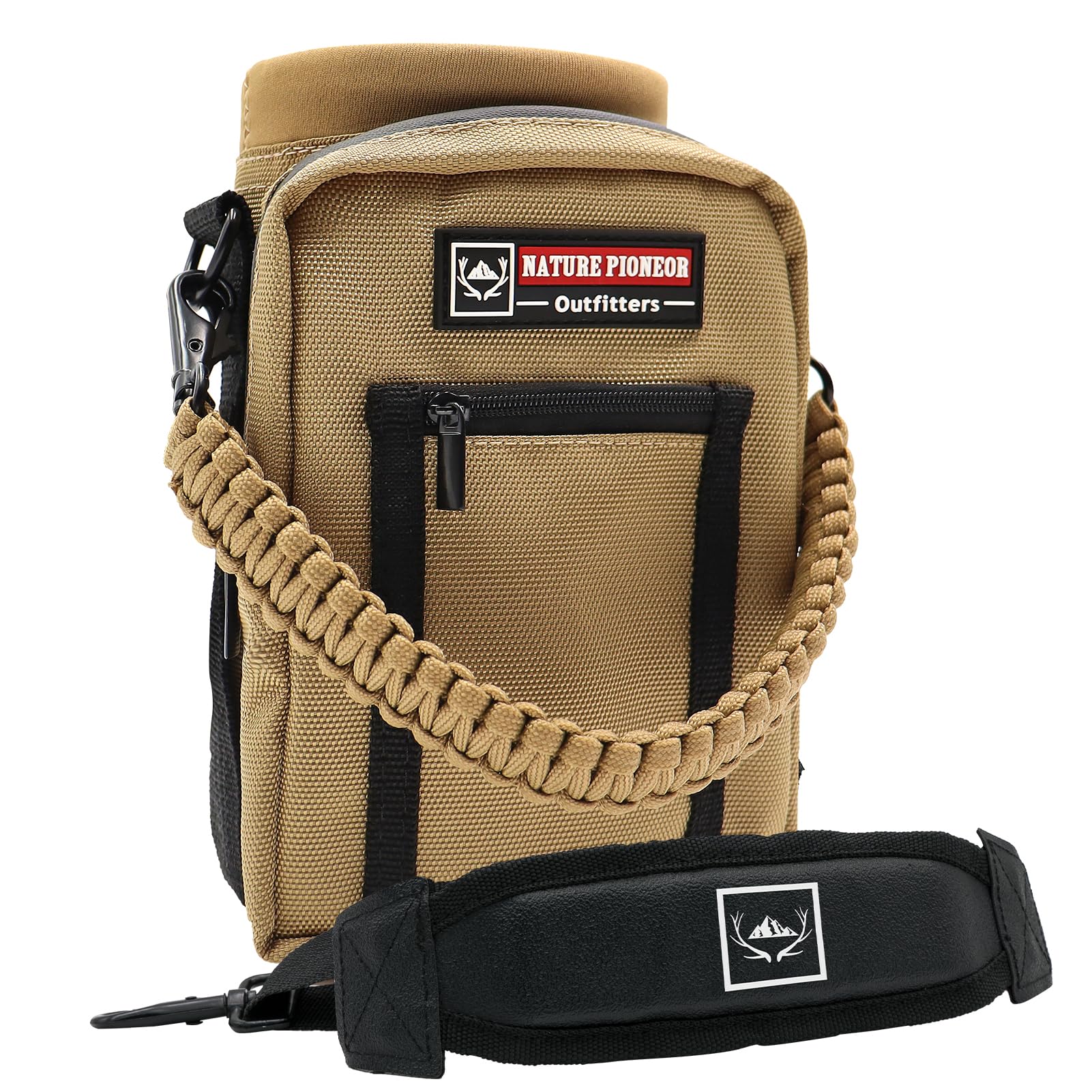 About NATURE PIONEOR: Our water bottle holder is multiple-use in fishing, camping, hiking and other outdoor activities, let you or your family carry own water, keep your hands free, enjoy travel and life NATURE PIONEOR products offer the best performance and comfortableness by combining fashion and functions for outdoor & indoor sports We can guarantee you that our products are High cost Effective Product Features: 1 This insulated water sleeve offers a great amount of carrying space It works greatly as carrier for stainless steel plastic glass bottles, please have a measurement of your bottle to make sure it will be perfectly fitted before your order 2 The Water Bottle Holder has metal D-Rings on the side to allow for additional pieces of equipment to be added if required 3 The leisure water bottle pouch features multiple storage compartments: 1 main compartment with drawstring closure and 2 front pockets 4 To meet our high standards, our designers of the new high-end functional bottle holder placed special emphasis on the style and function Product Parameters: Material: 1200D Oxford + Quality Neoprene 32 Ounces: Width: 531(135cm) Height: 75(19cm) Weight: 055 lb(250g) Max Bottle Width: 374(95cm) 40 Ounces: Width: 531(135cm) Height: 945(24cm) Weight: 066lb(300g) Max Bottle Width: 374(95cm) WARM TIPS: Due to different methods of measurement, please allow 04-08 dimension deviation Package Includes: 1 x NATURE PIONEOR Water Bottle Holder 1 x carrying Handle 1 x Adjustable Shoulder Strap Focusing Makes Professional Please choose a high quality and healthy water bottle holder for you or your loverPlease do not hesitate to contact us if you have any problems, we will reply you within 24 hours
