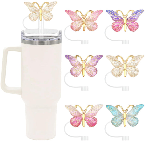 - SEMATA 6PCS Cute Butterfly Straw Cover Cap for Stanley Cup Accessories,Bling Straw Toppers for Stanley Tumbler 40&30 oz,Reusable