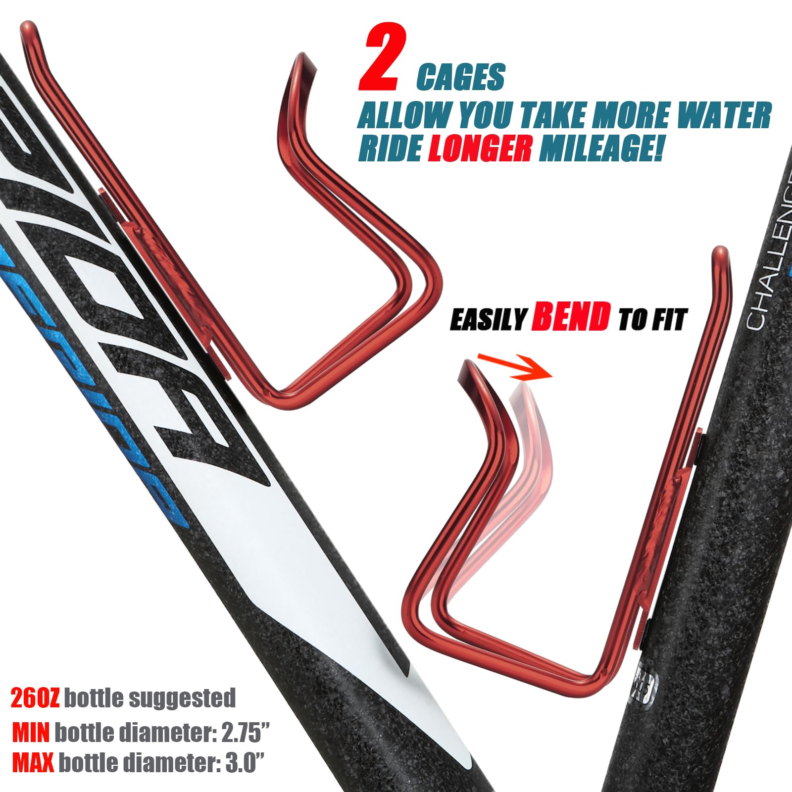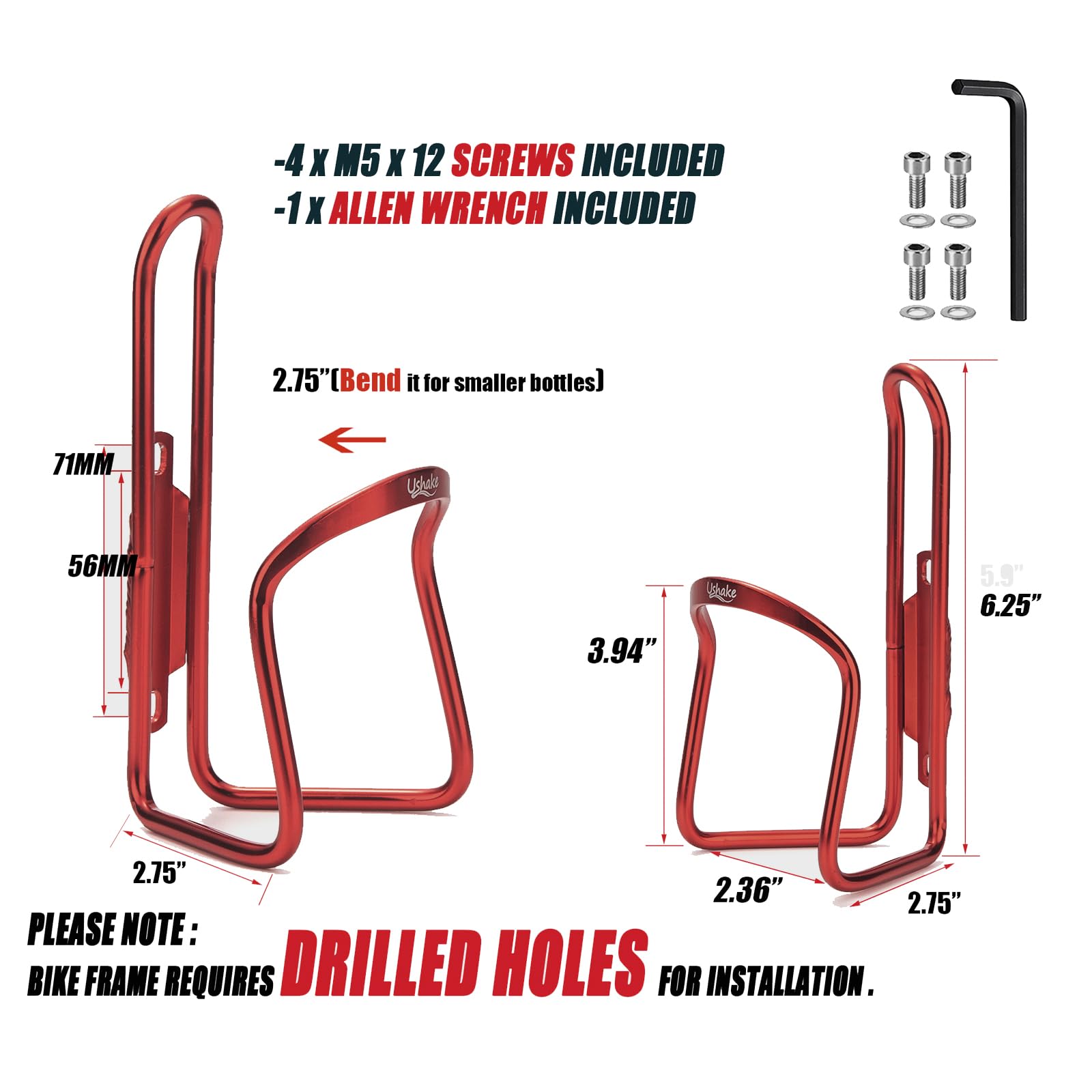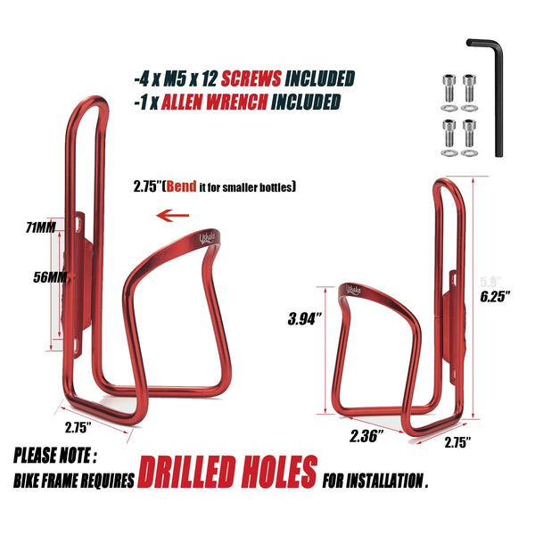 Ushake Water Bottle Cages For Mtb Bikes - Lightweight Aluminum Alloy Holder Brackets - Easy To Install With Drilled Holes - 2 Pa