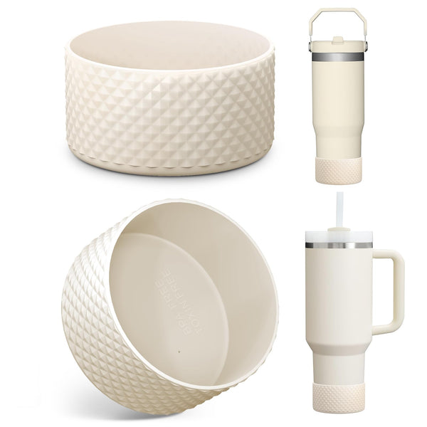 ?Excellent Protection?Still worried about broken, scratched bottoms of your favorite stainless steel water bottles? Or embarrassed by the clinking sound the bottle makes on the table? This silicone sleeve for Stanley can effectively protect the bottom of the bottle from depression, scratch, skid resistance and noise. | ?Perfect Compatiblity?The silicone boot is suitable for 40oz 30oz 20oz Tumblers. It is precisely made according to the size of the original cups, which perfectly fits the cup bottom and wont fall off easily. | ?Safe Material?Made of soft and stretchy silicone rubber, these silicone protector boots are BPA-free, food grade, without odor, reusable and durable. It could be daily used for Stanleys mug in peace of mind. Safe for all ages and dishwasher safe. | ?Customize Your Bottles?You can choose the same color with your bottle or different ones to create your own scheme the way you want it. Mix and match to customize your colorful look to make your tumbler more unique and creative. | ?Easy To Install?Before installation, please clean the bottom of the tumbler with a wet cloth and let them dry. Then slowly put the bottom sleeve cover on the bottle and squeeze out the air. Package of two, please buy with confidence, we are committed to providing 100% customer satisfaction, please do not hesitate to contact us if you have any questions.