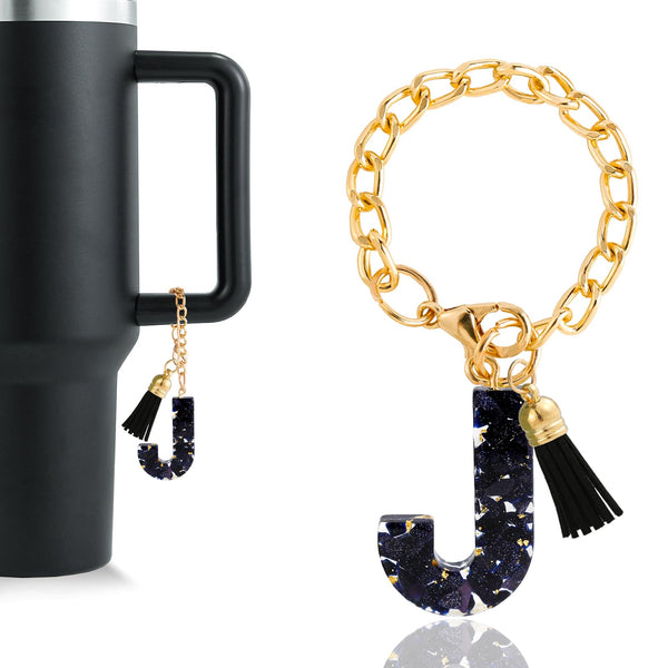 - Letter Charm Accessories for Stanley Cup 1 PCS Cute Initial Keychain Handle Charm for Stanley Tumbler for Women Black Letter J
