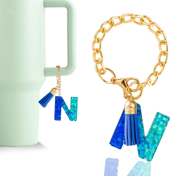 - Letter Charm Accessories for Stanley Cup 1 PCS Cute Initial Keychain Handle Charm for Stanley Tumbler for Women Blue Letter N