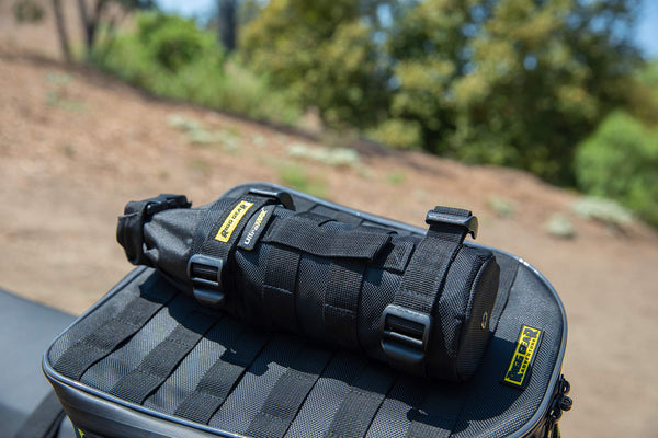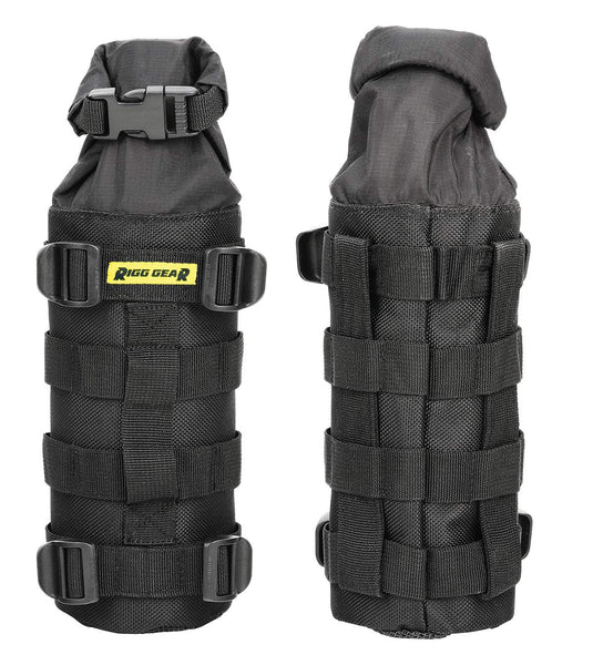 Industry leading UltraMax fabric that offers maximum fade resistance and prevention of break down from the natural elements. Roll top closure ensures bottle stays secure. Integrated straps weave into MOLLE systems as found on trails end tail bags. Included 4 webbing straps and buckles can mount to most racks. Able to hold up to 30 oz bottles. 12 H Rolled with 30 oz bottle 3. 75 Diameter.