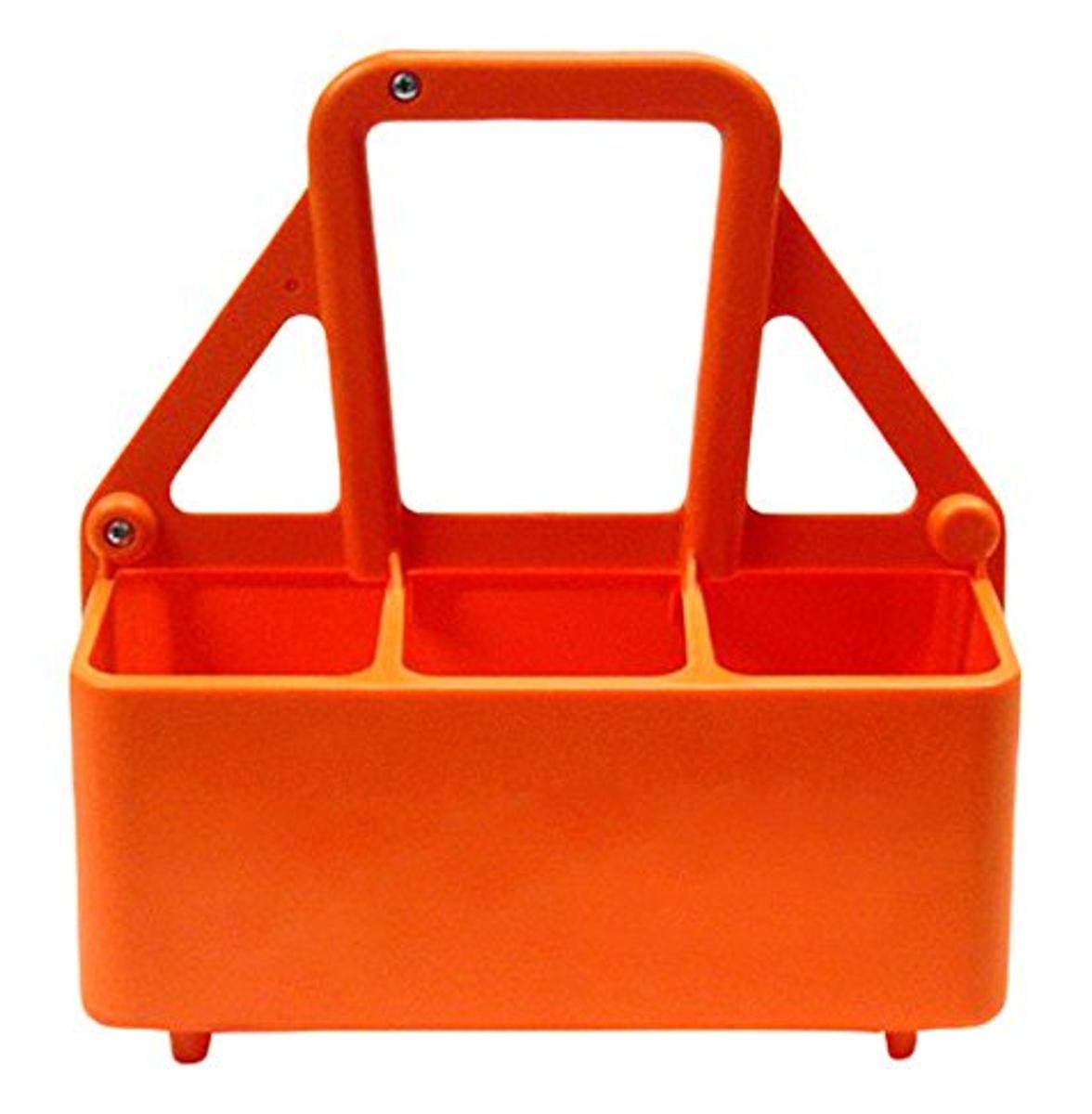 Water bottle carrier, durable plastic, orange, convenient molded handle, hold 6 - 26 oz bottles convenient molded handle