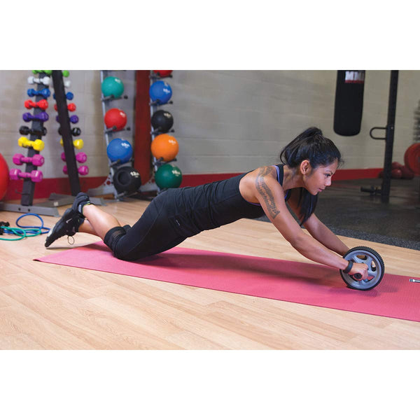 The Body-Solid Tools Ab Wheel is the perfect tool to strengthen and tone your abs, shoulders, arms, and back. Ab roller exercises force you to isolate the stomach and oblique muscles while you workout. Holding planks has never been more challenging while stabilizing the ab wheel. The Ab Roller features two wheels for added stability and comfortable plastic grip handles. The Ab Roller is simple, easy to use and the compact size allows you to easily store when not in use or pack for use on the go while traveling.