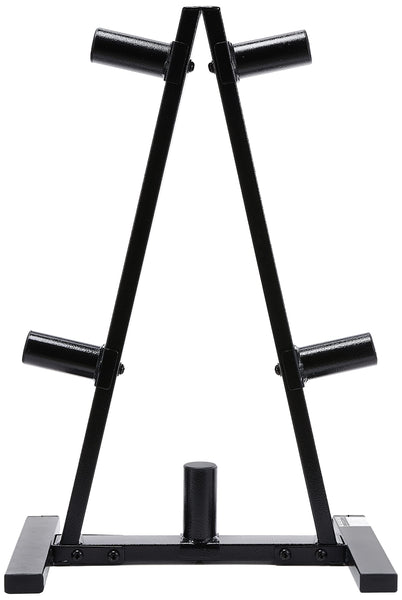 Keep your weight plates in order and off the floor with the CAP Barbell 2-inch Olympic plate rack. This rack features a durable steel construction and accommodates 2-inch plates. It also features a black powder-coat finish and triangular design. Ideal for home use to keep your workout space organized and your plates readily available. Steel construction offers outstanding durability. Keep floor protected and organize weights. Accommodates 2-inch plates.