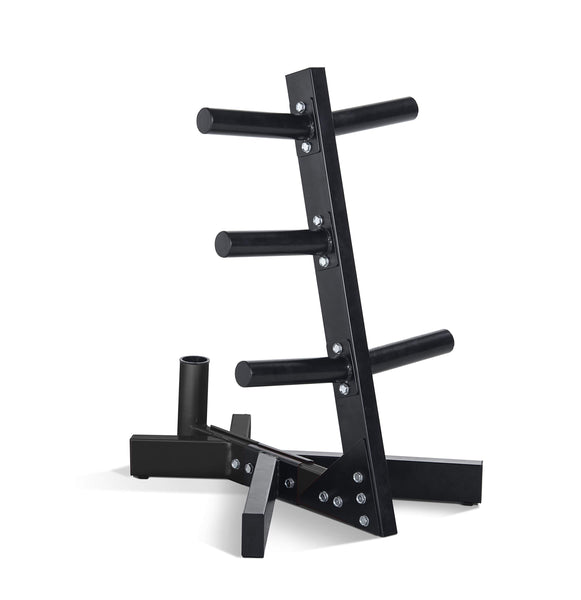 caps versatile Tree Storage rack for weights and bar is designed to handle heavy weight safely and securely Engineered with correct proportions and manufactured with quality materials This Olympic storage rack is one of the best weight plate racks on the market today constructed with heavy-duty steel with a durable powder coat finish, this rack is built to handle heavy weight loads Available in a variety of colors, you can customize your home gym with style This rack has a recommended weight capacity of 300 pounds Suggested storage of your 300-pound set (not included), is to place the 25, 35, and ten-pound plates on the 2-post side and the 10, 5, and 2 5-Pound plates on the 3-post side The cap plate Tree Storage rack holds Olympic plates that have a 2-inch center hole
