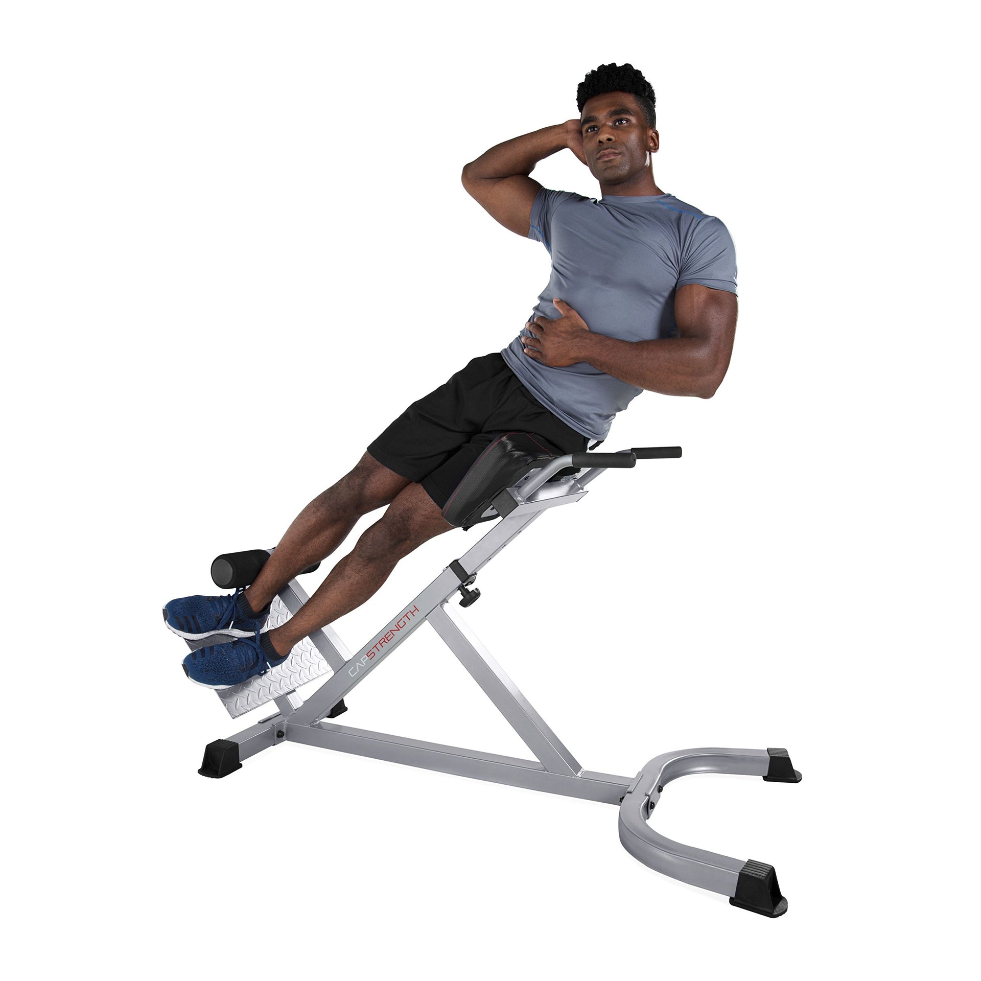 The CAP Strength Hyperextension is made of sturdy steel and can support users up to 300-pounds. The roman chair is hailed as one of the best lower back exercisers. Rehabilitation facilities world wide use hyperextension to alleviate lower back pain. This bench is economical, safe, and easy to use. Ideal for home use.