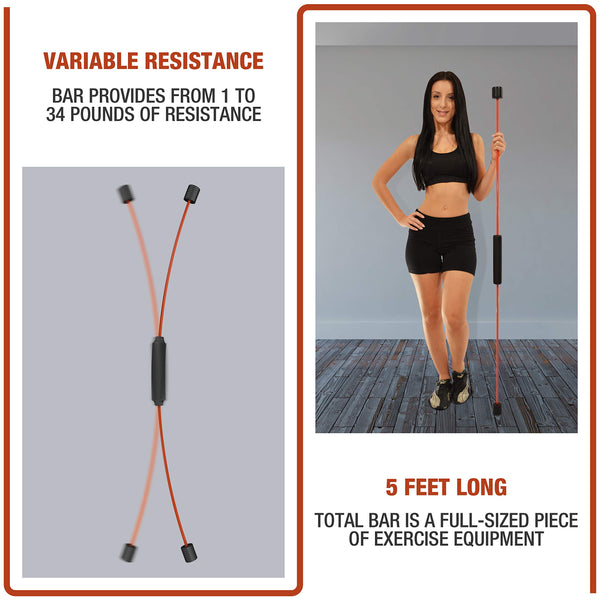 Total Bar is a vibration training system utilizing inertia that creates a resistance based workout providing rehabilitation, fitness enhancement, sports training, and overall wellness Total Bar applies up to 34 pounds of resistance to your muscles with every swing Swinging at a frequency of 270 swings per minute, Total Bar will give you results in as little as 15 minutes per day Includes: 1 Total Bar (60in x 2in, 1 to 34 lbs resistance), 1 carrying case, 1 Exercise guide and 1 Nutrition guide capable of producing up to 34 pounds of resistance, 270 times per minute Lightweight and portable - travels anywhere Weight 2 lbs Length: 5 feet Smooth and comfortable resistance based workout providing rehabilitation, fitness enhancement, sports training, and overall wellness Shipping Note: Shipping to Alaska, Hawaii, PO Boxes, and APO addresses is not available for this item