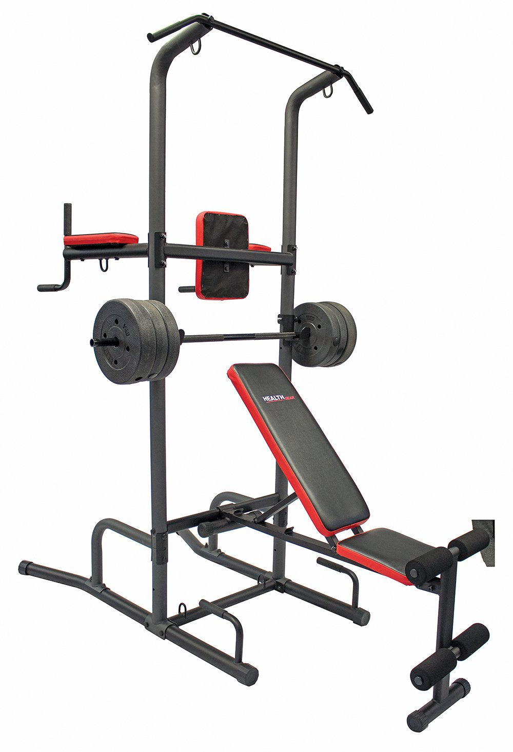 Health Gear CFT2.0 functional fitness ''gym style'' training system includes everything you need for a complete workout!! multi-station functional fitness tower with bench delivers over 13 comprehensive home gym workouts: Pull-Up chin up dip vertical knee raise Push-Up rear dip Sit-Up decline bench press flat bench press incline bench press decline dumbbell fly's flat dumbbell fly's incline dumbbell fly's 300 lb weight capacity .