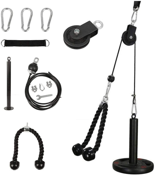 - Q: What exercises can I perform with this cable pulley system? A: You can perform a variety of exercises including tricep extensions, bicep curls, back rows, and forearm strength training, making it versatile for a full-body workout.