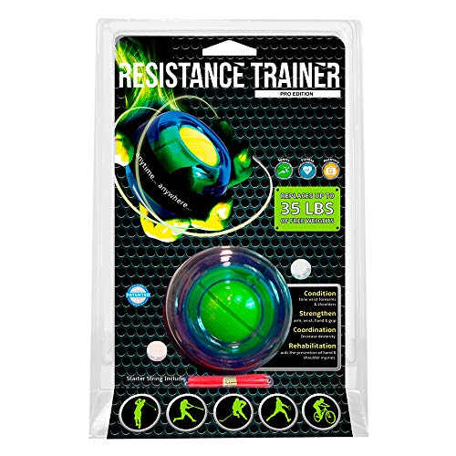 RT Pro Gyro Exerciser consists of a balanced gyroscopic rotor inside a compact sphere of polycarbonate plastic. Helps to build strength with variable resistance by reaching maximum RPMs approaching 9,000 and developing 32 lbs. of gyroscopic force. The easy to grip exerciser provides quite a workout for wrists, grip, and arms, while minimizing fatigue and providing good control. Great for injury prevention, rehab, warm up, coordination, strength building, and relaxation.