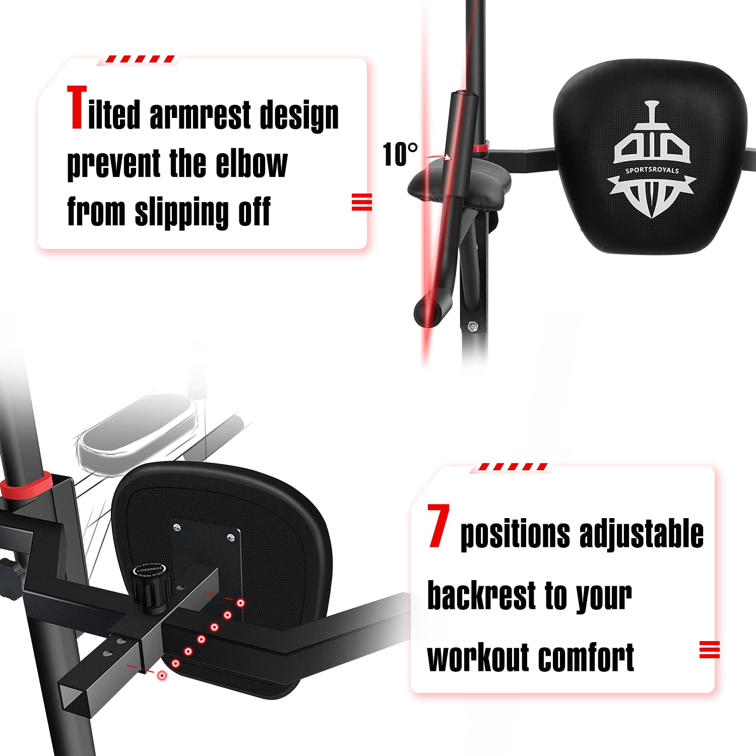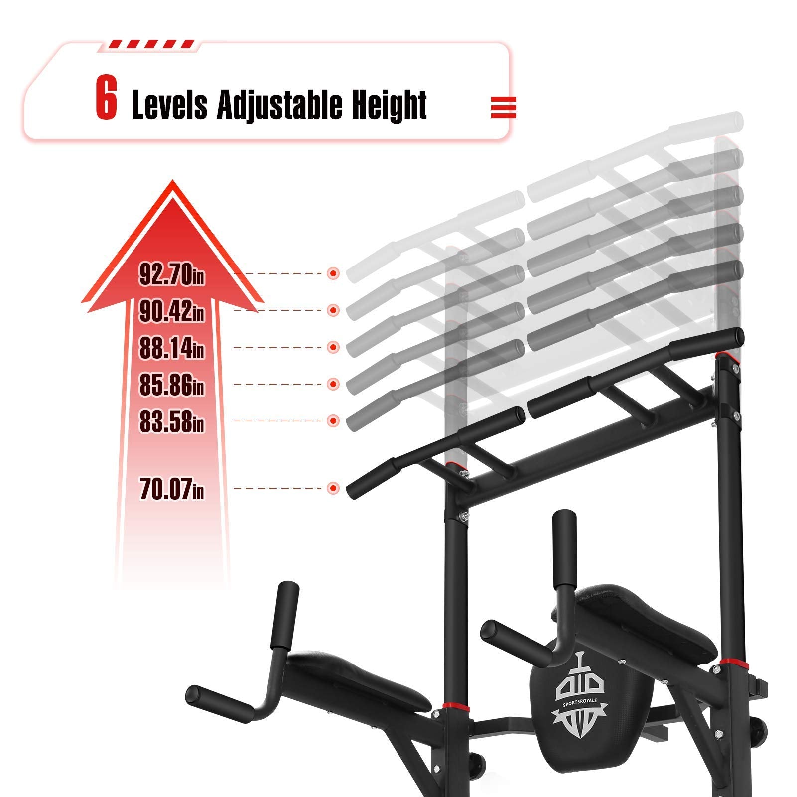 Sportsroyals Power Tower Pull Up Dip Station Adjustable Multi-Function Home Gym Strength Training Fitness Equipment Newer Versio