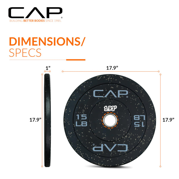Cap Barbell Economy - Speckled Olympic Bumper Plate Set With Gray Logo, Black, 15 Lb Pair