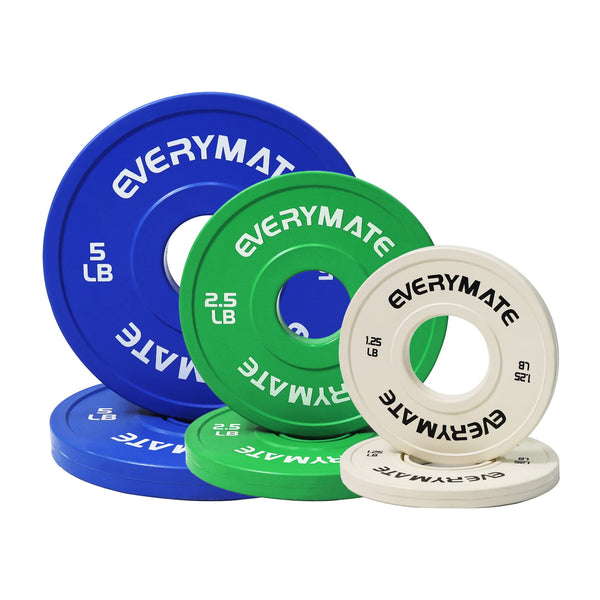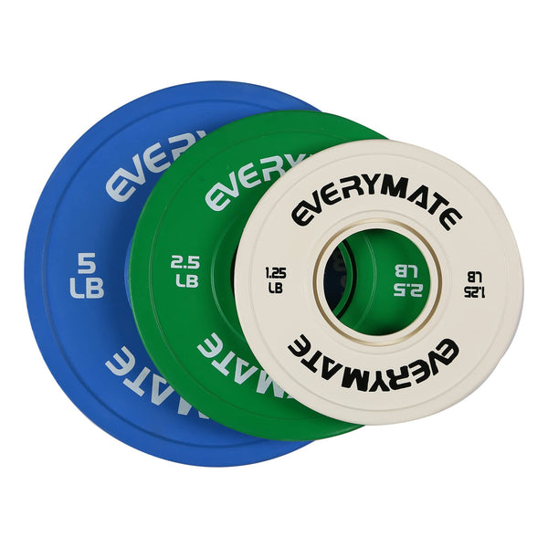 Weight Size: 1.25LB(White) 2.5LB(green) 5LB(Blue) EVERYMATE lightweight change plates series can help you complete your muscle training plans effectively. If you are a professional fitness enthusiast, the lightweight fractional weight plates can gradually increase your original training weight, allowing you to increase the weight while ensuring safety and also meeting your muscle training requirements. If you are a beginner, the sudden increase in weight is very challenging. You can choose to increase the weight slowly by 14 pound to reach the initial training requirements step by step. EVERYMATE Olympic bumper change plates have a 2-inch aperture, matching the Olympic barbell. High-quality rubber coating can reduce noise and make exercise quieter. They are more suitable for home exercises than steel plates. EVERYMATE is your best choice for muscle training.