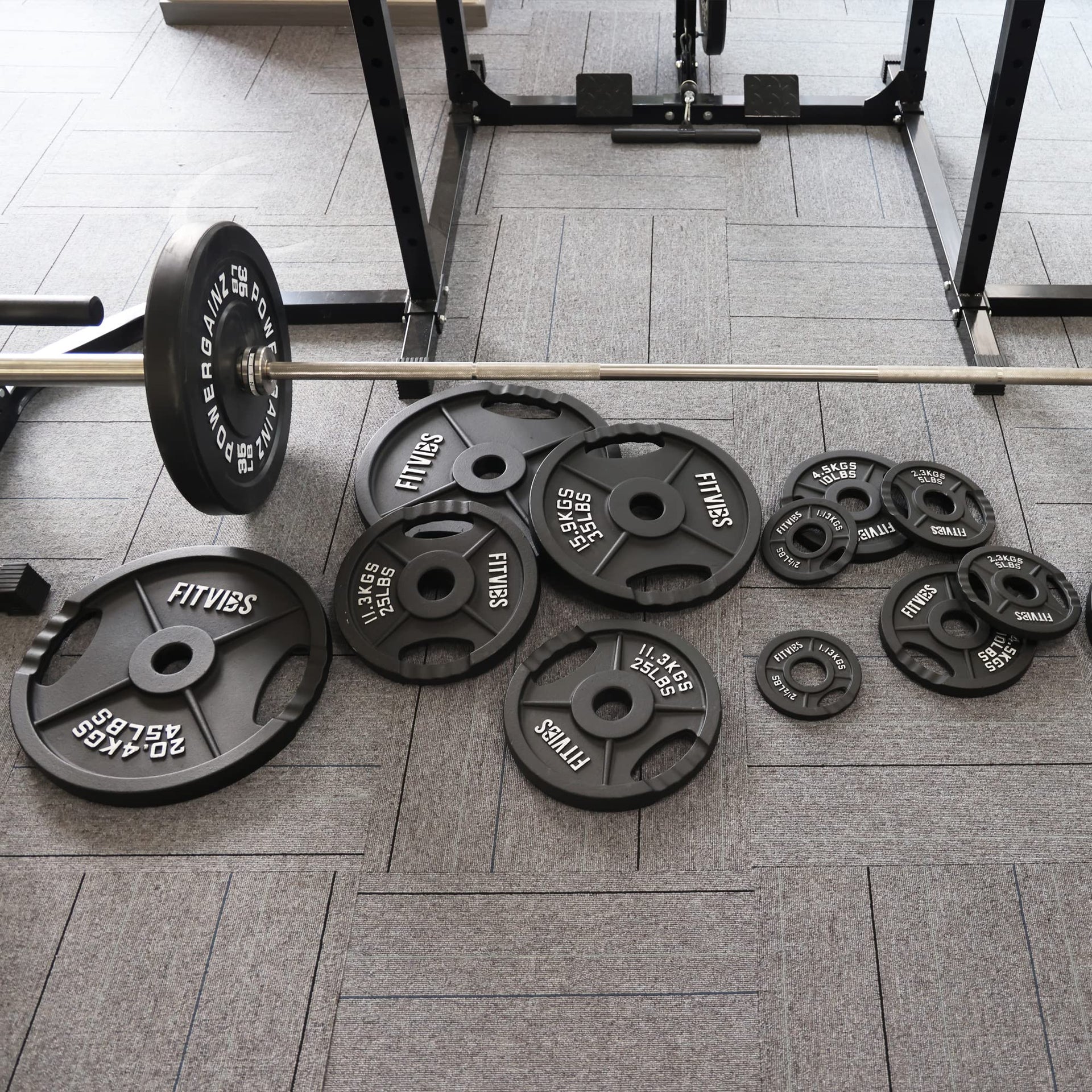 Fitvids Olympic 2-Inch Cast Iron Plate Weight Plate for Strength Training and Weightlifting, Two Hole Style, 25LB Pair