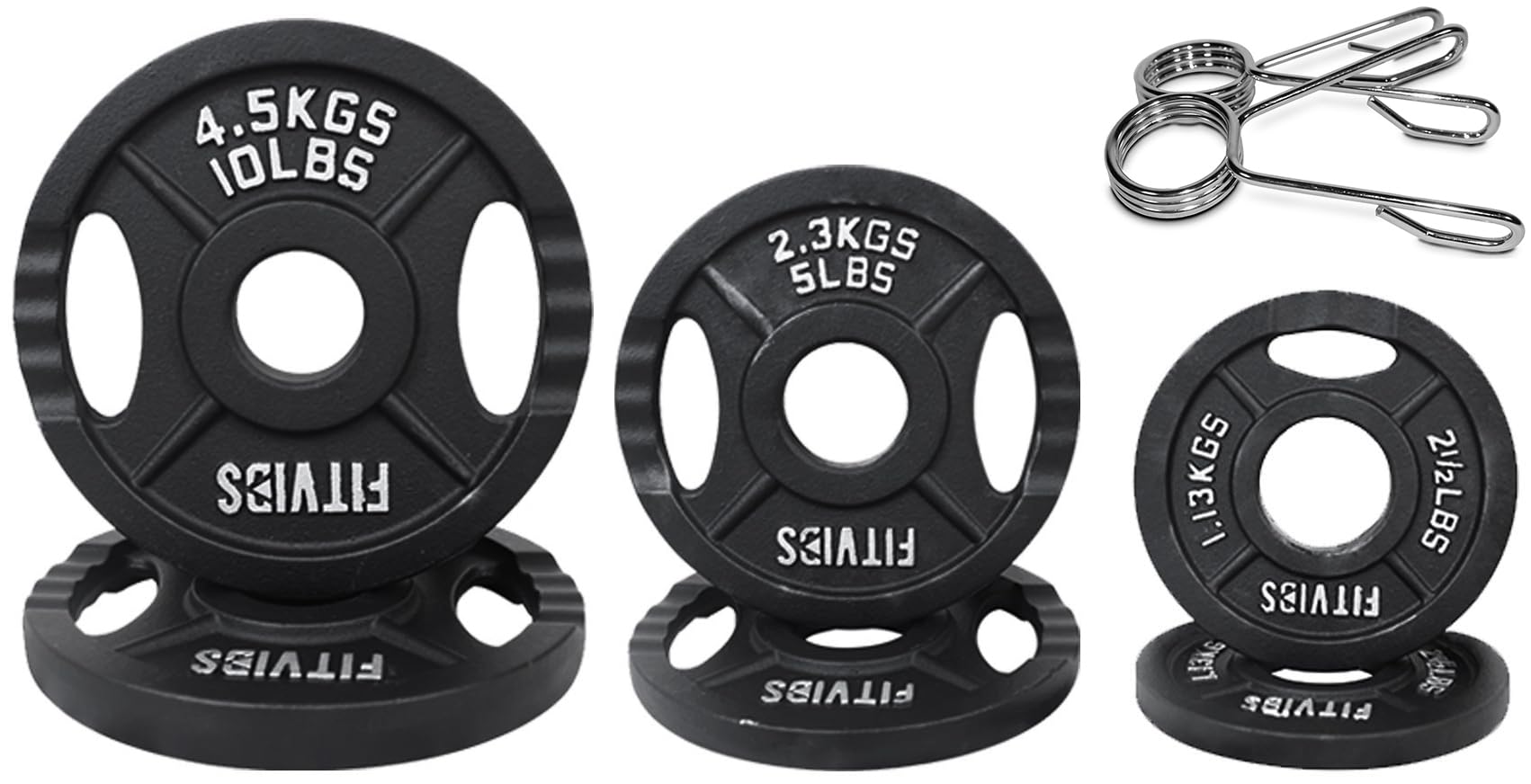 Fitvids Olympic 2-Inch Cast Iron Plate Weight Plate for Strength Training and Weightlifting, Two Hole Style, 35LB Set