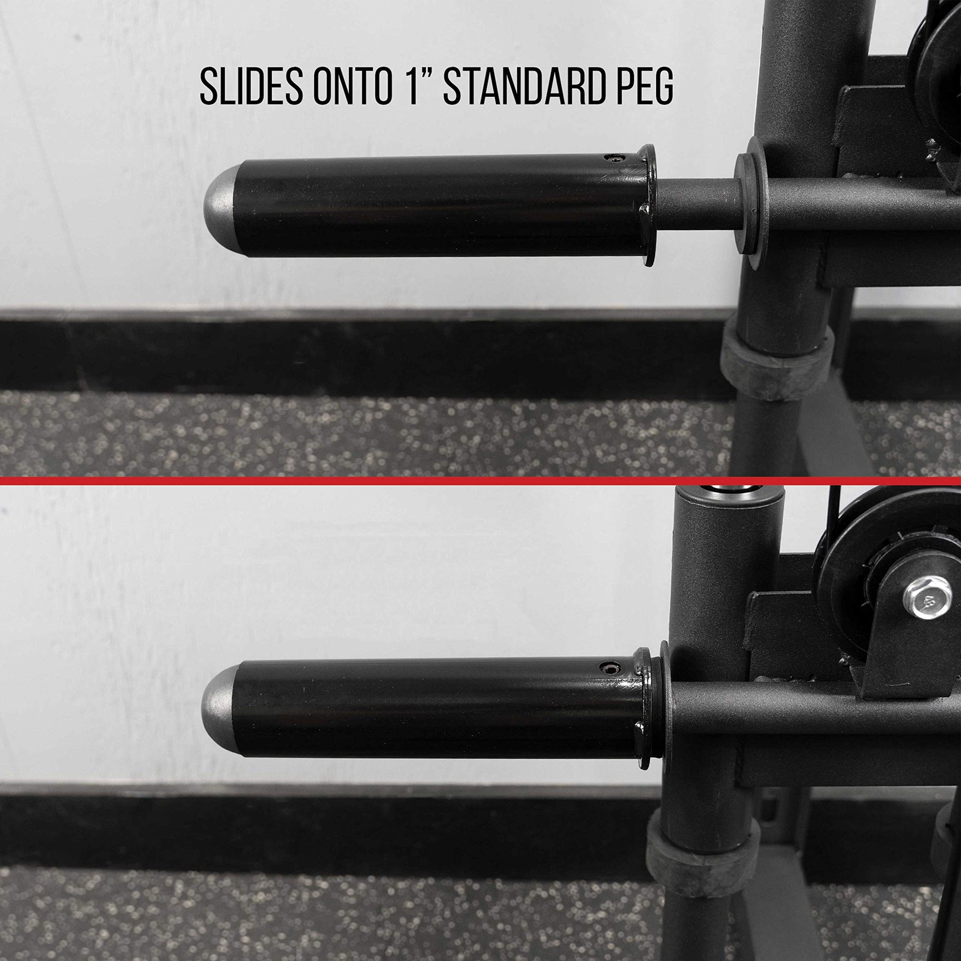 A common issue with some plate storage pegs is that they arent always big enough to fit the plates that you own. This can become a problem when there is too much open space between the opening of the plate and the storage peg. If this is an issue or your home or light-commercial gym, take advantage of the Valor Fitness EX-10 Olympic Adapter Sleeve that converts 1 standard plate posts to 2 Olympic plate posts. Constructed of carbon steel for strength and durability, the EX-10 will ensure your Olympic plates will snugly fit on your standard plate posts that are just too small to properly store larger plates. Measuring 9 long, 8 of which is usable , this Olympic Adapter Sleeve is securely fastened to plate posts using a hex bolt lock-down feature for long lasting performance. To ensure the EX-10 fits, the 1 standard plate post must be at least 7 long as the EX-10 has a shaft inside that the 1 peg must pass through to be secured. Your purchase includes a hex key for easy installation. Please note that each EX-10 Olympic Adapter Sleeve is sold individually.