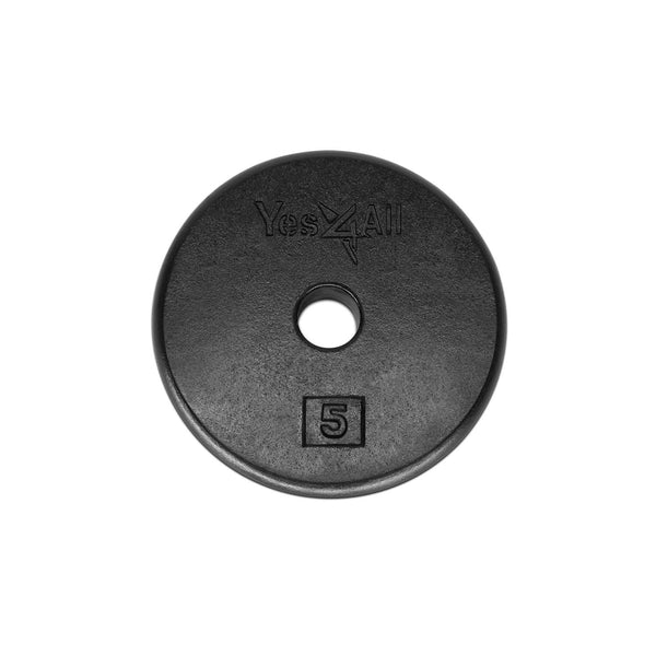 - Q: What are the dimensions of the Yes4All 1-inch Cast Iron Weight Plates? A: The Yes4All 1-inch Cast Iron Weight Plates come in various weights including 5 lbs, 7.5 lbs, 10 lbs, 15 lbs, 20 lbs, and 25 lbs, each designed to fit standard 1-inch bars and dumbbell handles.