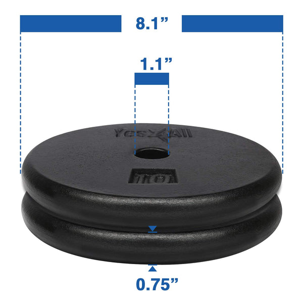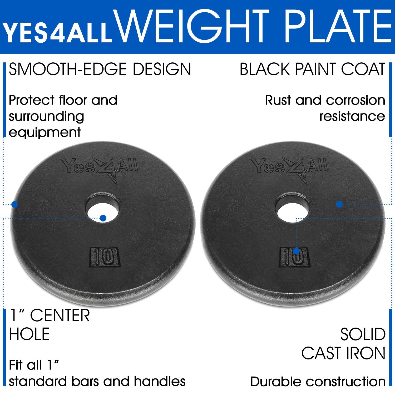 MUST-HAVE EQUIPMENT FOR ANY STRENgTH ENTHUSIASTS: Provide a varied range of strength exercises Add resistance to your workouts to burn fat, build up strength and muscle mass Work your whole body more effectively, especially your biceps, triceps, chest, shoulder, and legs WORK WELL FOR BOTH HOME AND gYM WORKOUTS Work them alone or load onto dumbbell, barbell, dipping bell Use for biceps curl, triceps extension, chest press, shoulder press & more Vary in weights - suitable for both men and women, beginner to advance BUILT FOR LASTINg AND cONVENIENT USE One solid piece construction: Enhance the durability and toughness of the weight plates 1A center hole: Fit most 1-inch standard bars, dumbbell handles and strength machines Anti-rust coating: Semi-gloss black paint coated finish to prevent rust and corrosion without any unpleasant odor PRODUcT SPEcIFIcATIONS: Material: cast iron Structure: One solid piece coating: Semi-gloss black paint center hole: 1 inch color: Black Individual Weights: 5 lbs , 7 5 lbs , 10 lbs , 15 lbs , 20 lbs , 25 lbs combo 1: 2 x 5lb