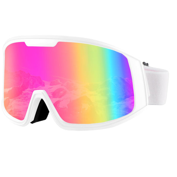 Ukoly Ski/Snowboard Goggles for Men Women, Snow Goggles HD Lens Anti-Fog Coating OTG Design UV400 Protection Windproof (White Fr