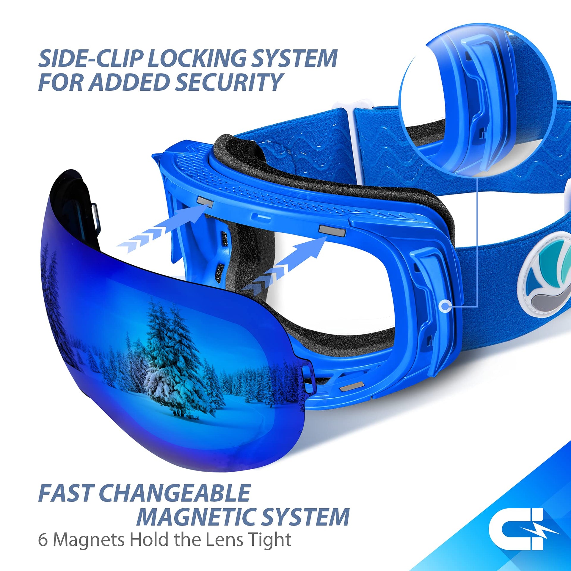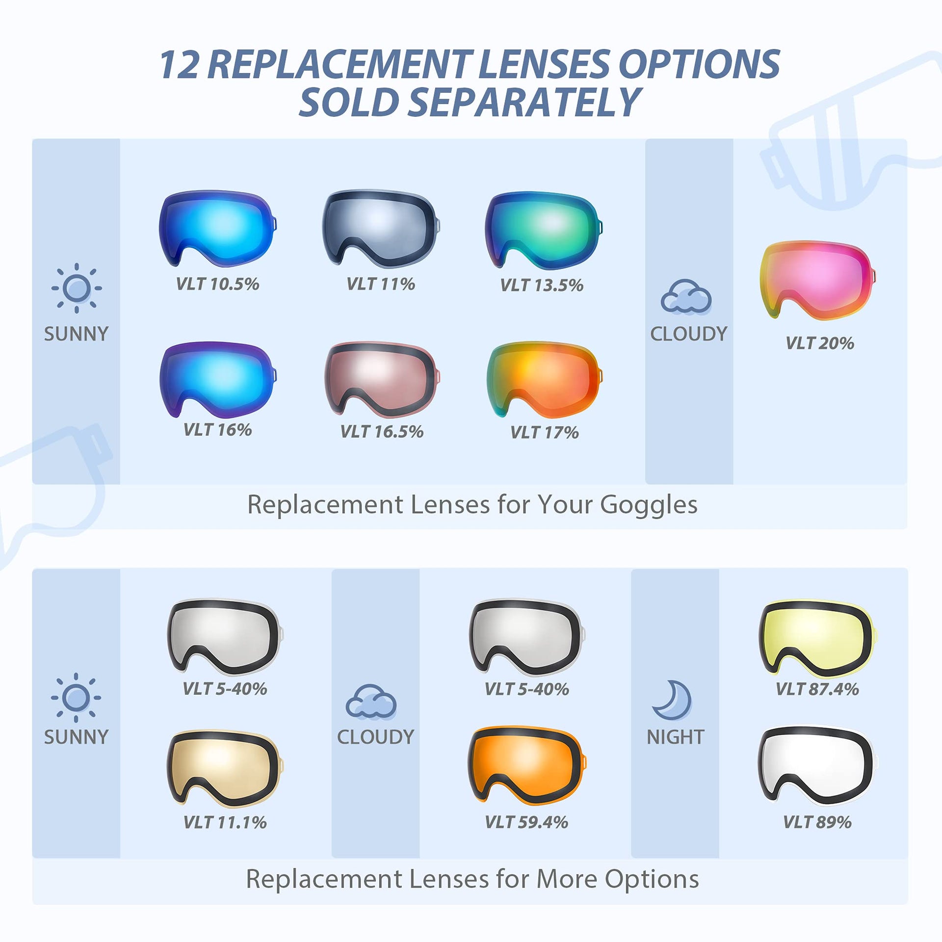 VANRORA ski goggles with magnetic & clip locking system and interchangeable lens