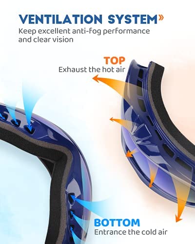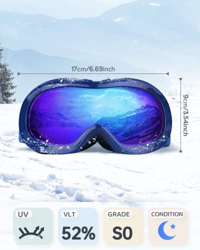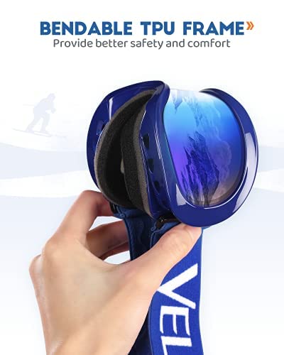 Velazzio Kids Ski Goggles, Snowboard Goggles Otg Snow Goggles Anti-Fog Double-Layer Lenses, 100% Uv Protection (Blue Frame/Blue