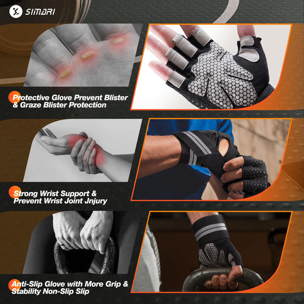 Simari Breathable Workout Gloves For Men Women, Padded Weight Lifting Gloves With Wrist Wraps Support, Full Palm Protection, Gri