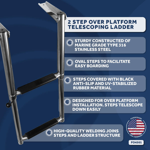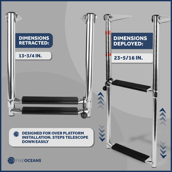 Five Oceans 2 Step Boat Ladder, Over Platform Telescoping Boat Ladders, Boat Swim Ladder, Boat Boarding Ladder, 316 Stainless St