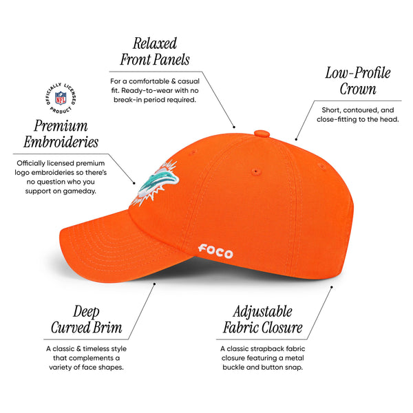 Foco Men'S Miami Dolphins-Orange Cap Nfl Logo Casual Hat, Team Color