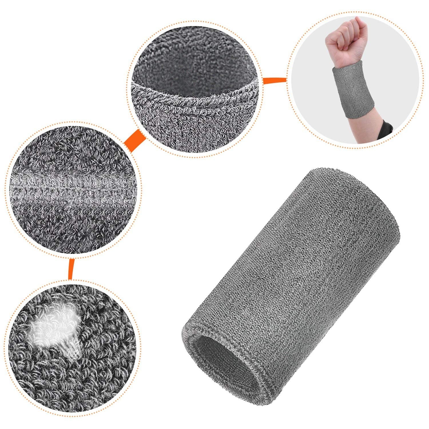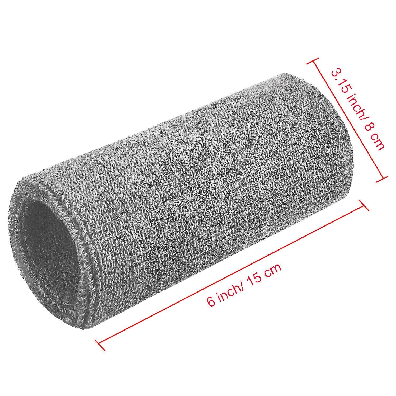 6 Inch long sweat wristband sport hand bands athletic wristbands for men and women Elastic wristband fit most wrists: This hand sweat band is made of high elastic materials, the size fits for most men and womens wrists Elastic size and main soft material give you a comfortable wear feeling Easy to wash: Suggest washing by hand, its also can be washed by machines, these elastic sweatbands keep their shapes and wont over stretch for a stylish look They are absorbent sweatband and dry quickly: Their double layers are designed with thickness organic material, absorb sweat effectively and dry quickly, soft and breathable, offering you with a better sports experience Wide applications: Suitable for wearing in all sports, such as running, walking, playing basketball, softball, volleyball, soccer, tennis, golf, baseball, etc Specification: Material:12% spandex, 3% nylon Size (L x W): approx 6 x 315 inch 15 x 8 cm