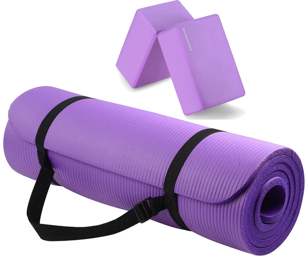 Balancefrom All-Purpose 1/2-Inch Extra Thick High Density Anti-Tear Exercise Yoga Mat With Carrying Strap And Yoga Blocks