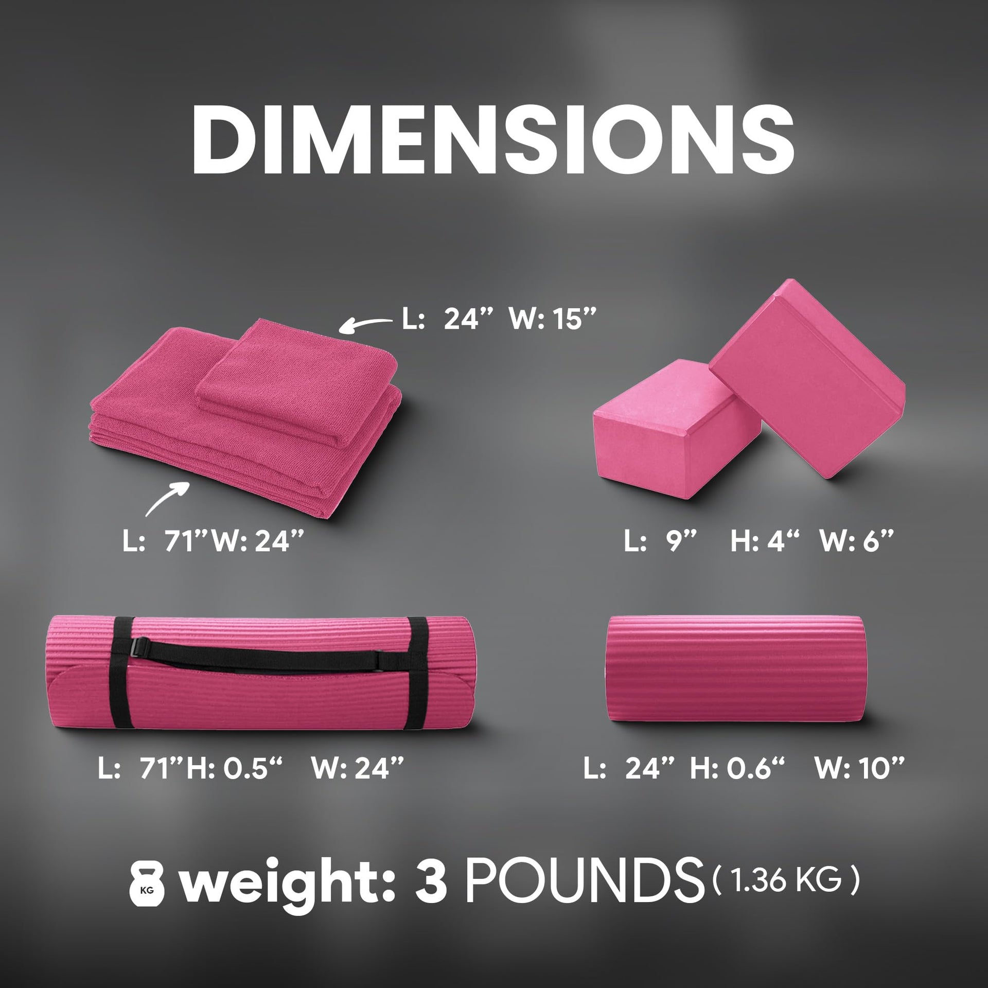 Overview: BalanceFrom GoYoga Series 7-piece set includes: 1 yoga mat with carrying strap, 2 yoga blocks, 1 yoga mat towel, 1 yoga hand towel, 1 stretch strap, 1 yoga knee pad. With double sided non-slip surfaces, Both mats come with an excellent slip resistant advantage to prevent injuries. Moisture resistant Technology makes the mat to be easily washed with soap and water. 2 Styles to choose from: set with 1/2'' thick mat and set with 1/4'' thick mat. 1/2'' .thick mat dimension: 71'' long 24'' wide; 1/4'' thick mat dimension: 68'' long 24'' wide. Our 72 x24 and 24 x15 yoga towels are made of 100% microfiber and feature prime absorption to provide slip-resistant and sweat-free workouts. 100% machine washable. 1x yoga knee pad at 24'' x 10'', with 5/8'' (15 mm) thick for perfect cushion. 2x yoga blocks at 9'' x 6'' x 4'' and 1x yoga strap to make you a complete yoga set. Customer satisfaction is our highest priority.