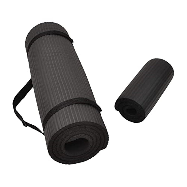 Overview: comes with a regular mat and a knee pad Regular mat measure 71 long 24 wide, 12 thick, ensures comfort for people of all shapes and sizes Knee pad measures 24 wide 10 long, 35 thick With double sided non-slip surfaces, BalanceFrom All-Purpose Premium exercise yoga mat comes with an excellent slip resistant advantage to prevent injuries Exceptional resilience allow you to keep your balance during any exercise style moisture resistant technology makes the mat to be easily washed with soap and water Easy strapping and light weight feature are added to this mat for easy transport and storage BalanceFrom All-Purpose Premium exercise yoga mat is manufactured and sold exclusively by BalanceFromDimensions: Regular mat measures 71 long 24 wide , 12 thick, ensures comfort for people of all shapes and sizes Knee pad measures 24 wide 10 long, 35 thick With high density foam material, the 12 thick premium mat comfortably cushions spine, hips, knees and elbows on hard floorsAT A gLANcE:-comes with a regular mat and knee pad-Excellent non-slip traction and cushion-A free carrying strap is included-Light weight and portable