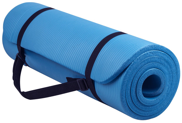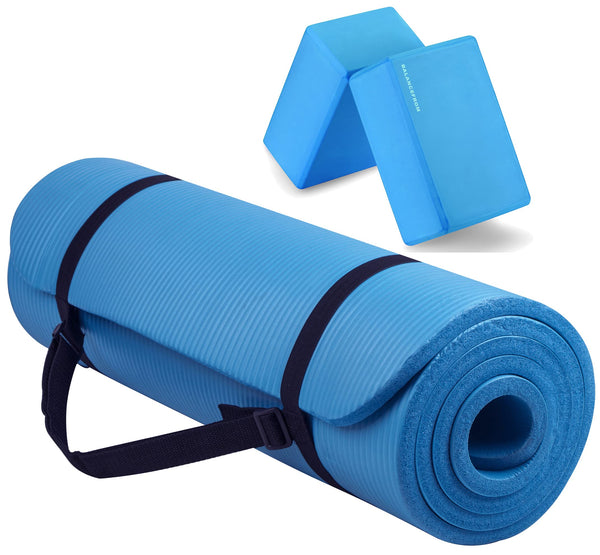 Fitvids All Purpose 1/2-Inch Extra Thick High Density Anti-Tear Exercise Yoga Mat With Carrying Strap And Yoga Blocks, Blue