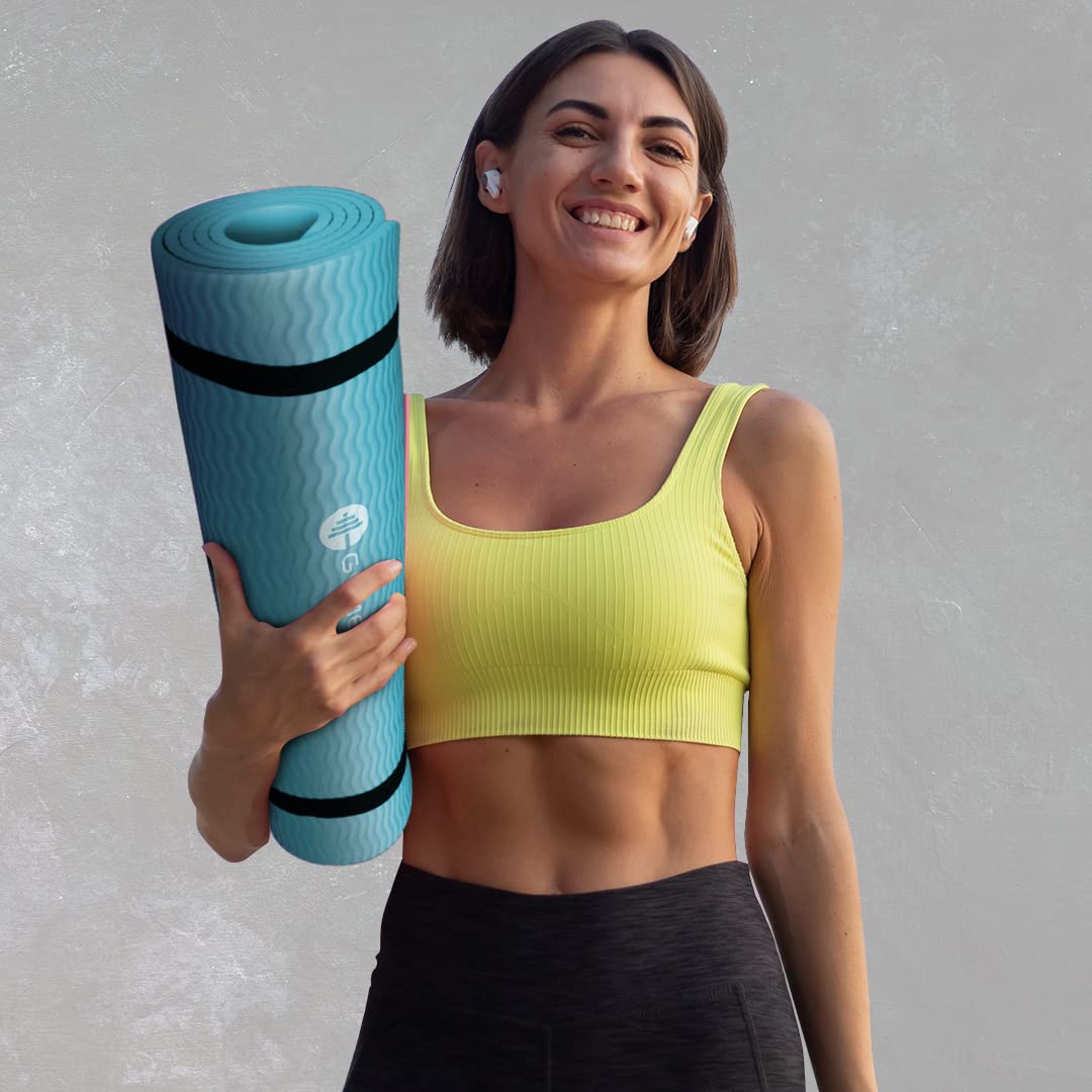 DETAILS:Great for any workout that needs a MAT, Yoga, Pilates, Gymnastics also great for camping or just relaxing and its even great for tanning by the beachOur WAVY DESIGN YOGA MAT will be more stable and anti slip compared to the mats that are plain or have straight lines, and gives it a more modern lookFREE CARRYING STRAP INCLUDED!This Is great outdoor and indoor MAT, ideally to use as a floor carpet in your bedroom or for your pet to relax and play on it.Soft textured surface, Great comfort, provides cushioning for your body, when laying down on our mat you feel the softness that will make you feel relaxed. Mat Dimensions: 71 inches long, 24 inches wide and 1/3 inch thickness, comes in different colors,This yoga is manufactured from the so-called Clean NBR, made from Eco-conscious ingredients. As a result, this is versatile and highly durable yoga mat is an excellent choice for any kind of practice, and if durability is an issue, you could always recycle it, since it's so neutral to the environment. Extra thick and soft, this mat enables comfortable yoga practice by providing cushioning for your knees, ankles, and other sensitive areas.Absolutely not toxic - made of Eco-conscious materials!
