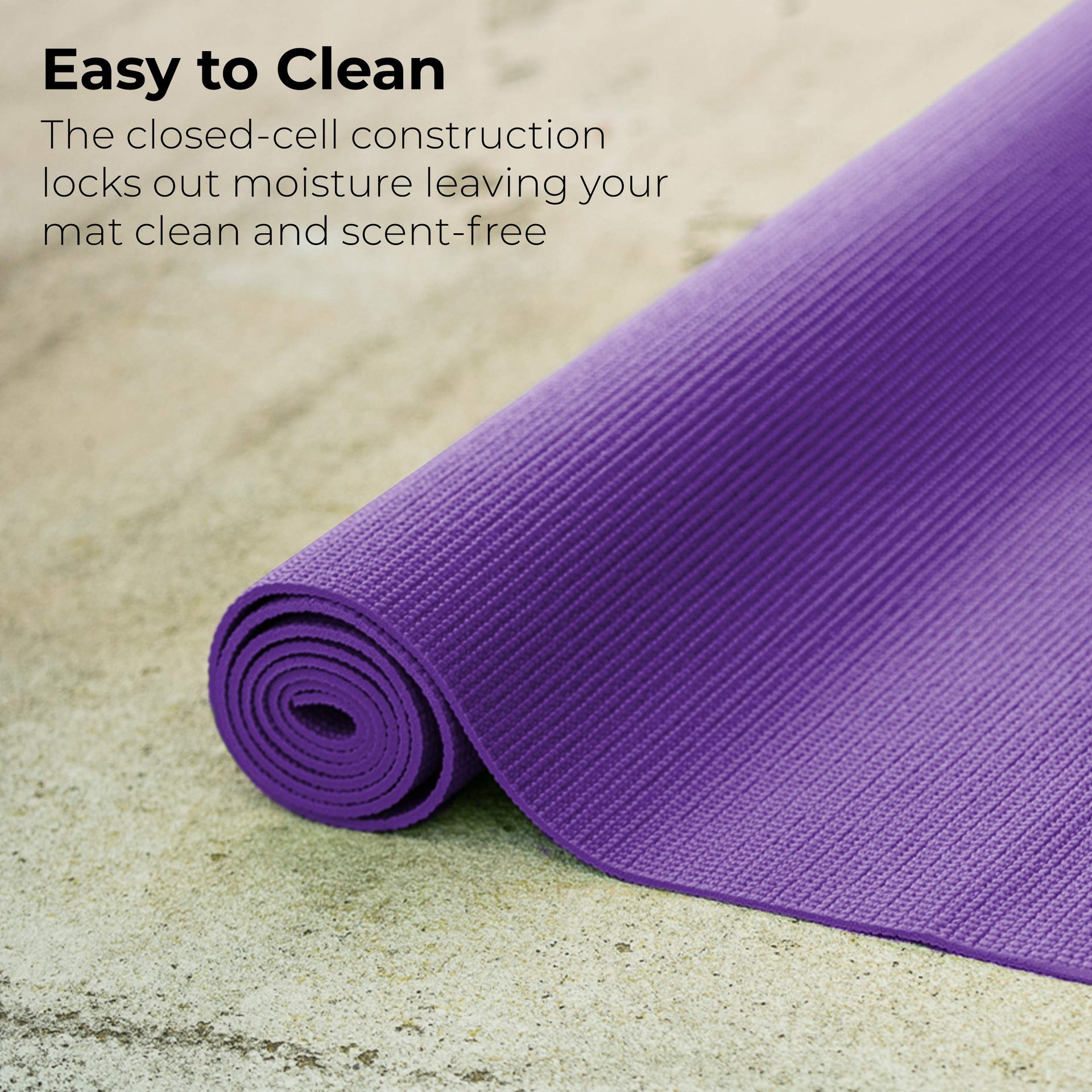 Hello Fit Yoga Mats offer great performance, perfect for people looking for affordable yoga props for their studios, gyms, or classes. Available in different colors and cost-effective, multi-pack options, youll discover that you dont need to sacrifice quality to maintain your budget. With a lightly textured, firm surface, this gym mat provides improved traction, so you can have a stable footing when changing or holding poses during yoga or Pilates. Its 4mm thickness ensures that your knees and joints are cushioned whether you're stable in a pose, stretching, or planking. The high-quality, closed-cell vinyl foam construction creates a barrier against moisture, enabling the non slip mat to stay clean longer for easy maintenance. To clean the mats, wipe them down with a 50/50 mixture of water and vinegar, then air dry completely before rolling them back up. This set includes 10 bulk yoga mats that are individually wrapped and measure 68 inches long and 24 inches wide. Hello Fit Yoga Mats are produced without latex, lead, heavy metals, and 6P phthalates, so you can feel good whenever you work out.