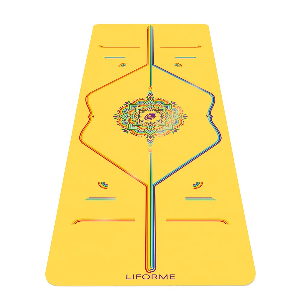 - Q: What colors are available for the Liforme Printed Yoga Mat? A: The Liforme Printed Yoga Mat is available in a vibrant 'Yellow Rainbow' pattern, designed to inspire positivity and hope during your practice.